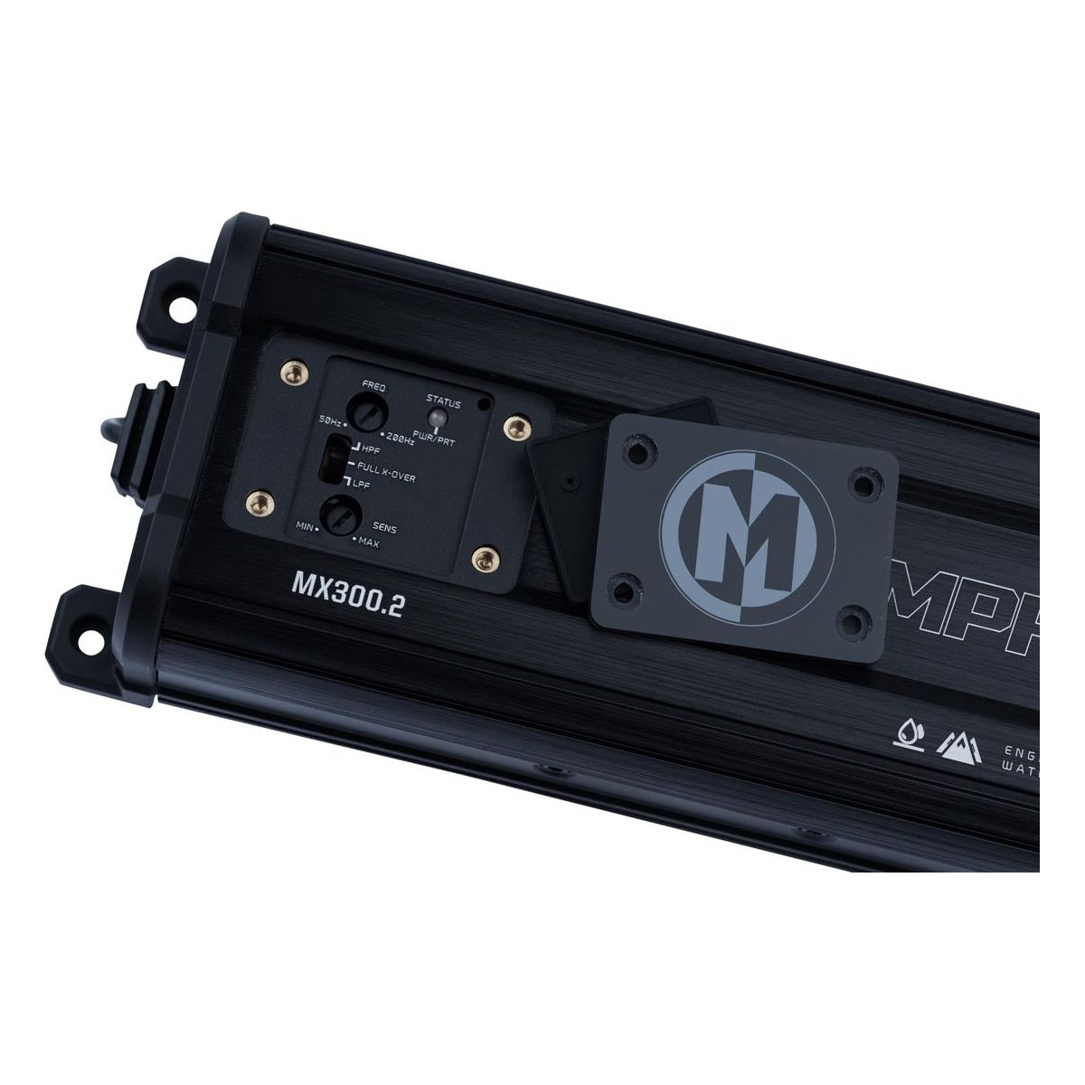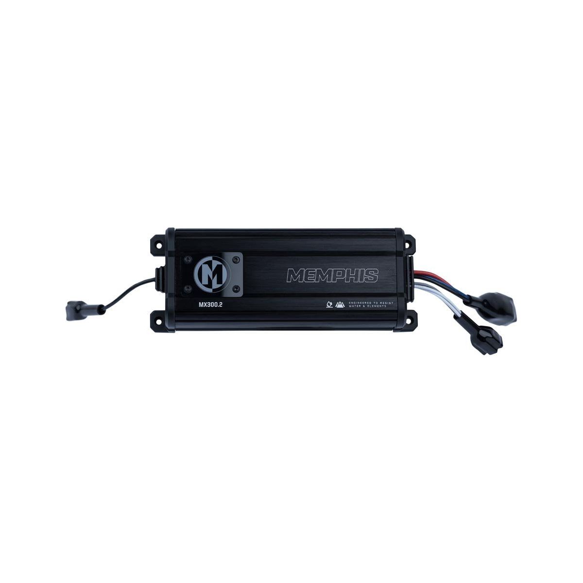Memphis MX powersports amplifiers were designed with powersports at their core. These IP66 rated compact amplifiers provide massive power in a small package making them the perfect fit for most limited space side by side audio systems. The conformal coated boards and water resistant plugs make sure these amplifiers will continue to crank out big power in the any weather. A top mounted water resistant cover protects the easy access top mounted controllers making tuning simple even in tight spaces.