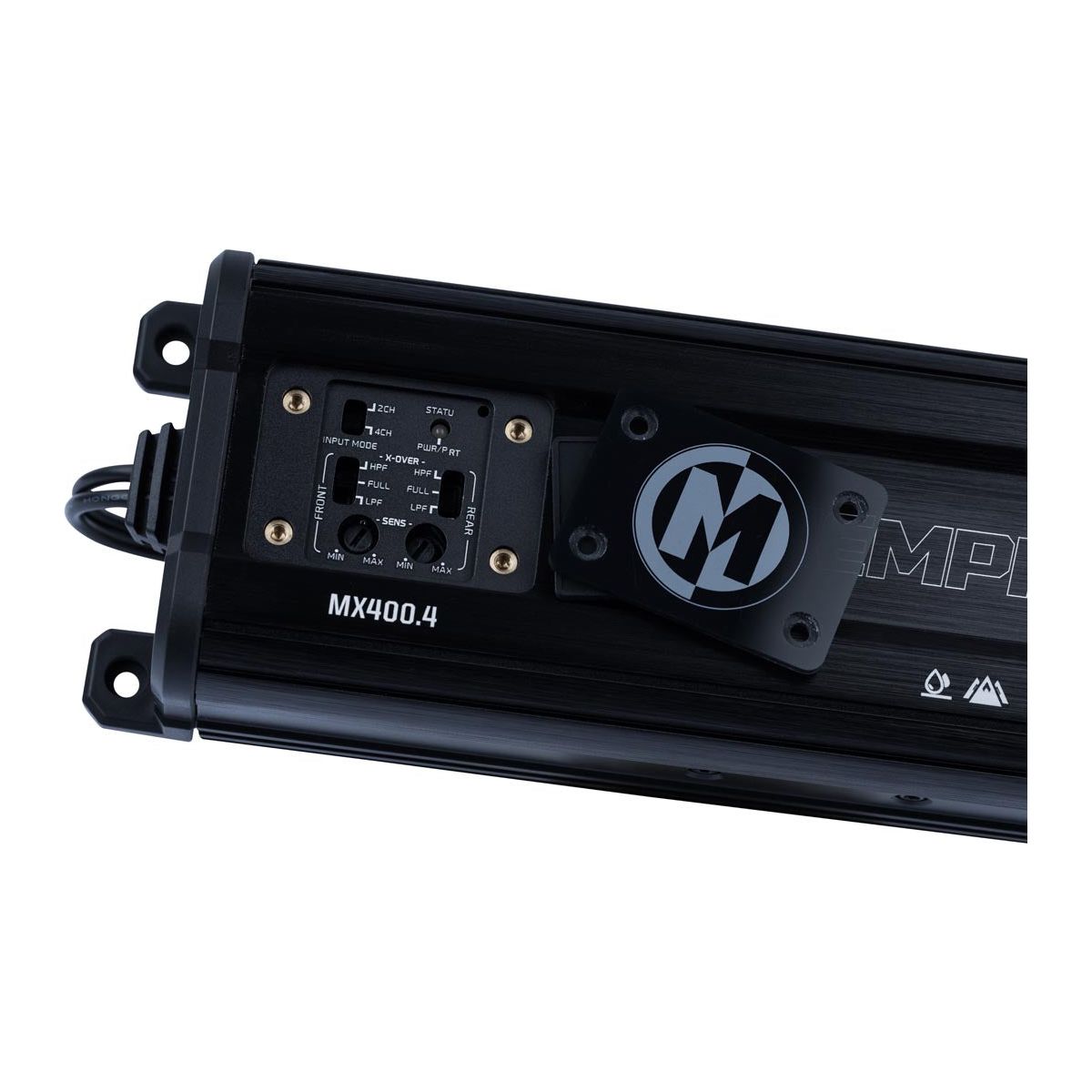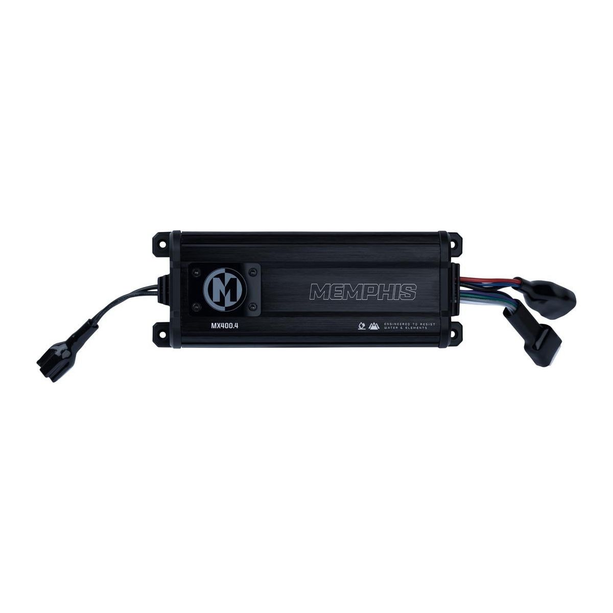 Memphis MX powersports amplifiers were designed with powersports at their core. These IP66 rated compact amplifiers provide massive power in a small package making them the perfect fit for most limited space side by side audio systems. The conformal coated boards and water resistant plugs make sure these amplifiers will continue to crank out big power in the any weather. A top mounted water resistant cover protects the easy access top mounted controllers making tuning simple even in tight spaces.