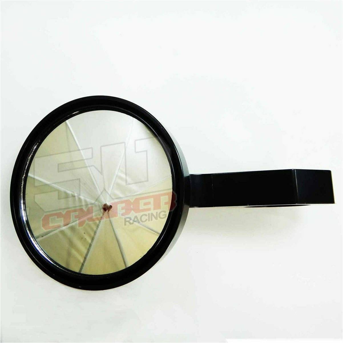 UTV Side Mirrors. Set of two mirrors for driver side and passenger side. Fully adjustable with shatter-proof tempered glass and ball socket joint for unlimited viewing angles. Actual mirror dimensions: 5.5″ x 9.4″ includes clamps.