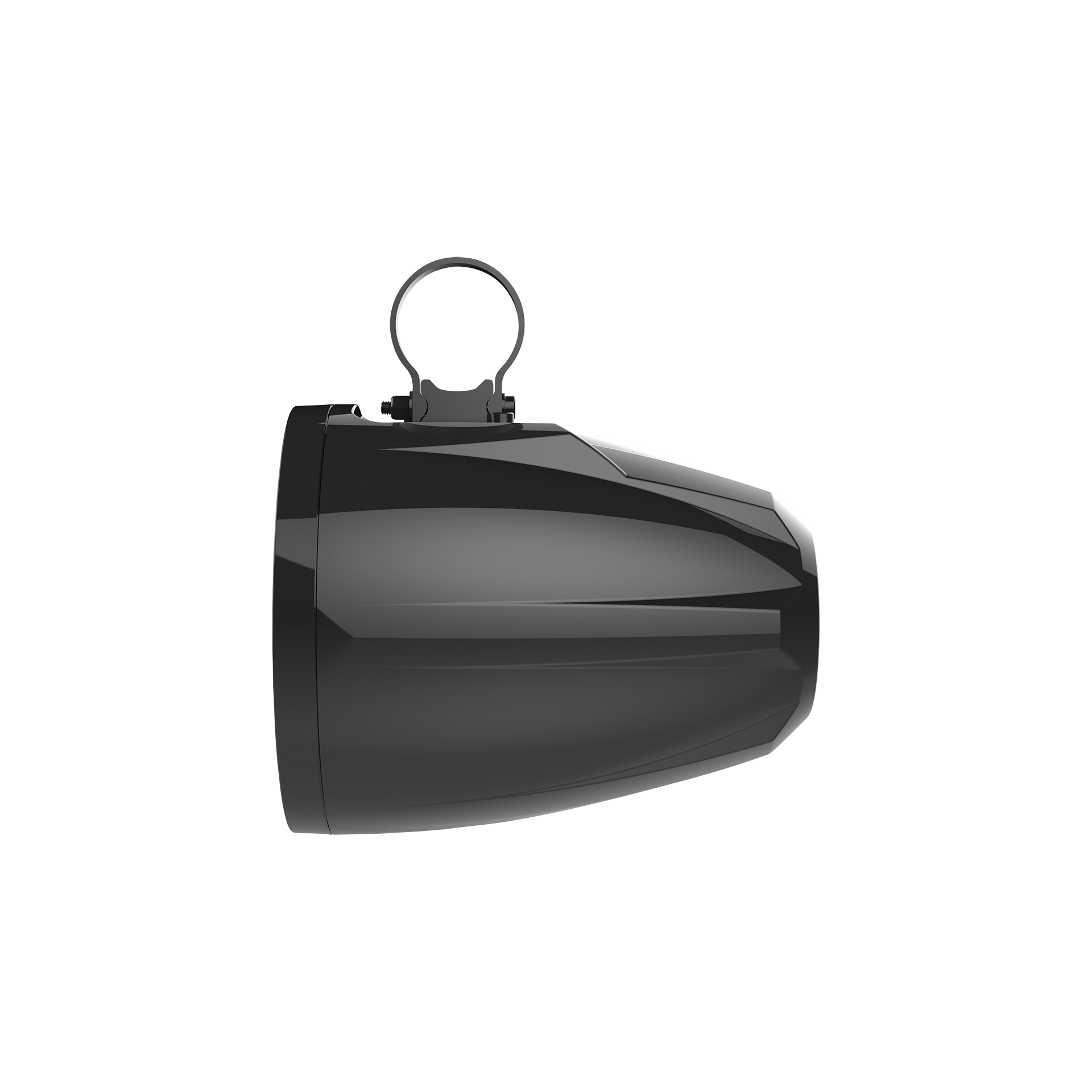 Compact, black pod speakers that can be installed on any UTV, sand rail, Jeep® or other vehicle with mountable bars (handle bar, roll bar, frame bar, etc).