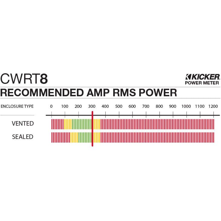 The CompRT 8-inch Subwoofer works best with a sealed enclosure and 300 watts of recommended power. See below for more details.