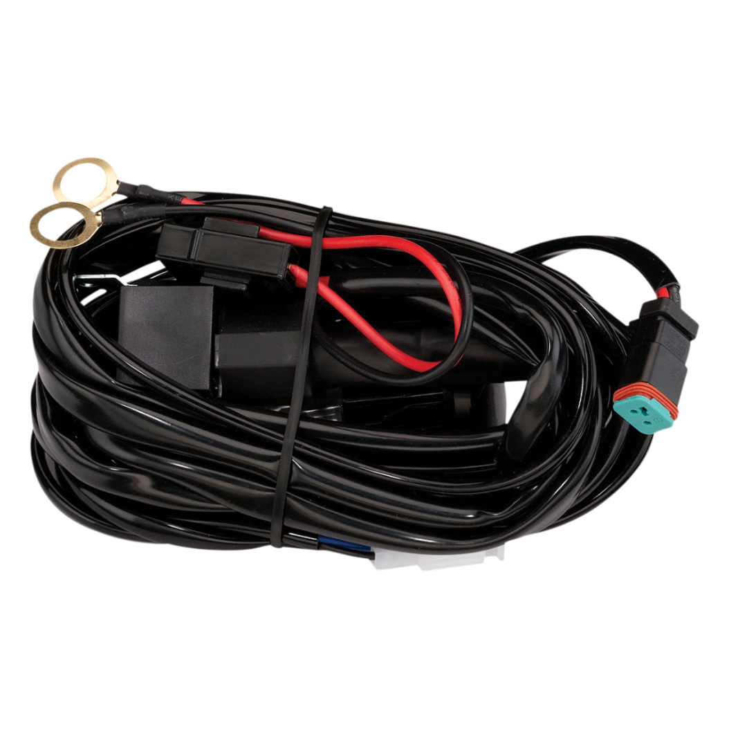 - Includes mounting brackets, stainless hardware, deluxe wiring harness with DT sealer connectors, relay, fuse, ring terminals and lighted knock-out style in-dash rocker switch
