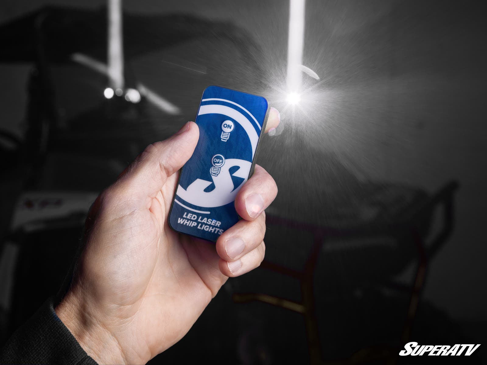 Kit Includes(2) LED laser whips lights, (2) Mounting brackets, Wireless remote, Wire harness w/ rocker switch, Control box, Installation hardware.