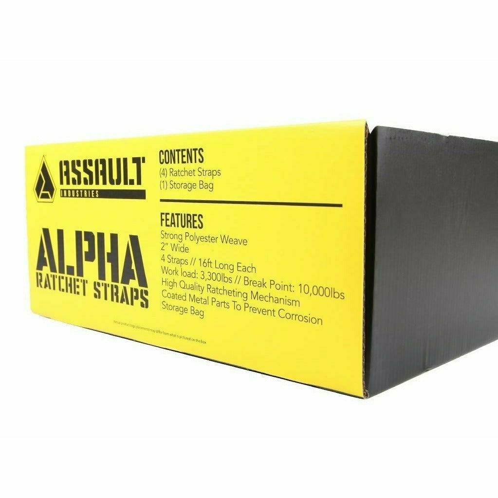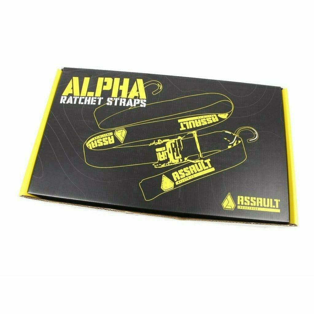 Take Assault Industries Alpha Ratchet Straps wherever you go! These 2 inch (50mm) wide straps are made from an ultra strong polyester weave and feature high quality coated hooks and a large, easy-to-use ratcheting mechanism.