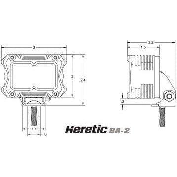 The Heretic BA-2 LED Light Pod is our staple pod light used for various applications from an optimal chase light to a ditch light, A-pillar light and beyond. These high performance clear LED pod lights are designed and manufactured in the USA, housed in CNC machined aircraft-grade aluminum, and outfitted with best-in-class circuit boards that allow temperature control and long-lasting light. The BA-2 LED Light Pod is recommended on the front or rear bumpers of Trucks, Jeeps, SUVs, and UTVS. They can also be used on the sides and rear of roof racks as a chase light. This clear light pod is best for clear night conditions.