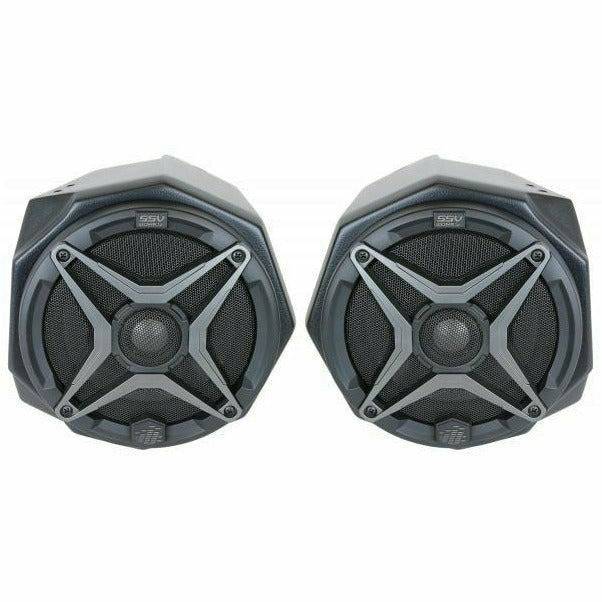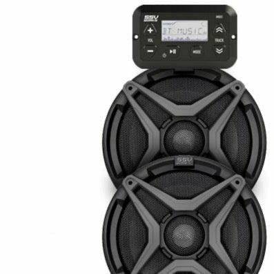 Everything in one box. No soldering, no cutting, no crimping! Simply bolt in the pre-installed speakers and pre-tuned amplifiers with the included vehicle specific plug & play wiring harness. This system features the best of SSV Works to bring your side X side the cleanest, loudest and most powerful powersports audio system available. Plus, it's easy to install so you spend more time riding and less time wrenching. Each kit comes pre-loaded with SSV Works speakers, subwoofers and amp.