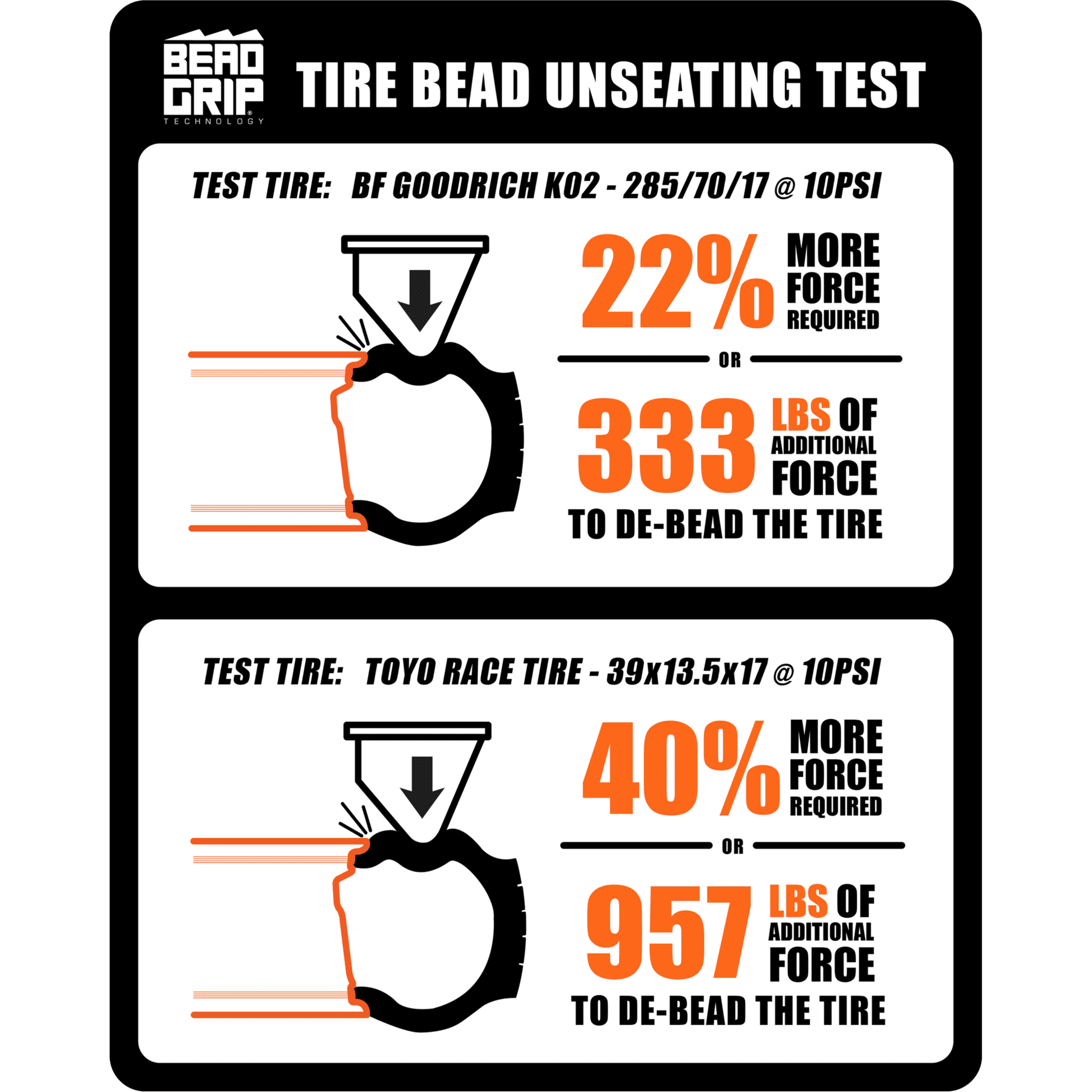 - Patented Bead Grip® technology engages tire bead for increased grip at low tire pressures