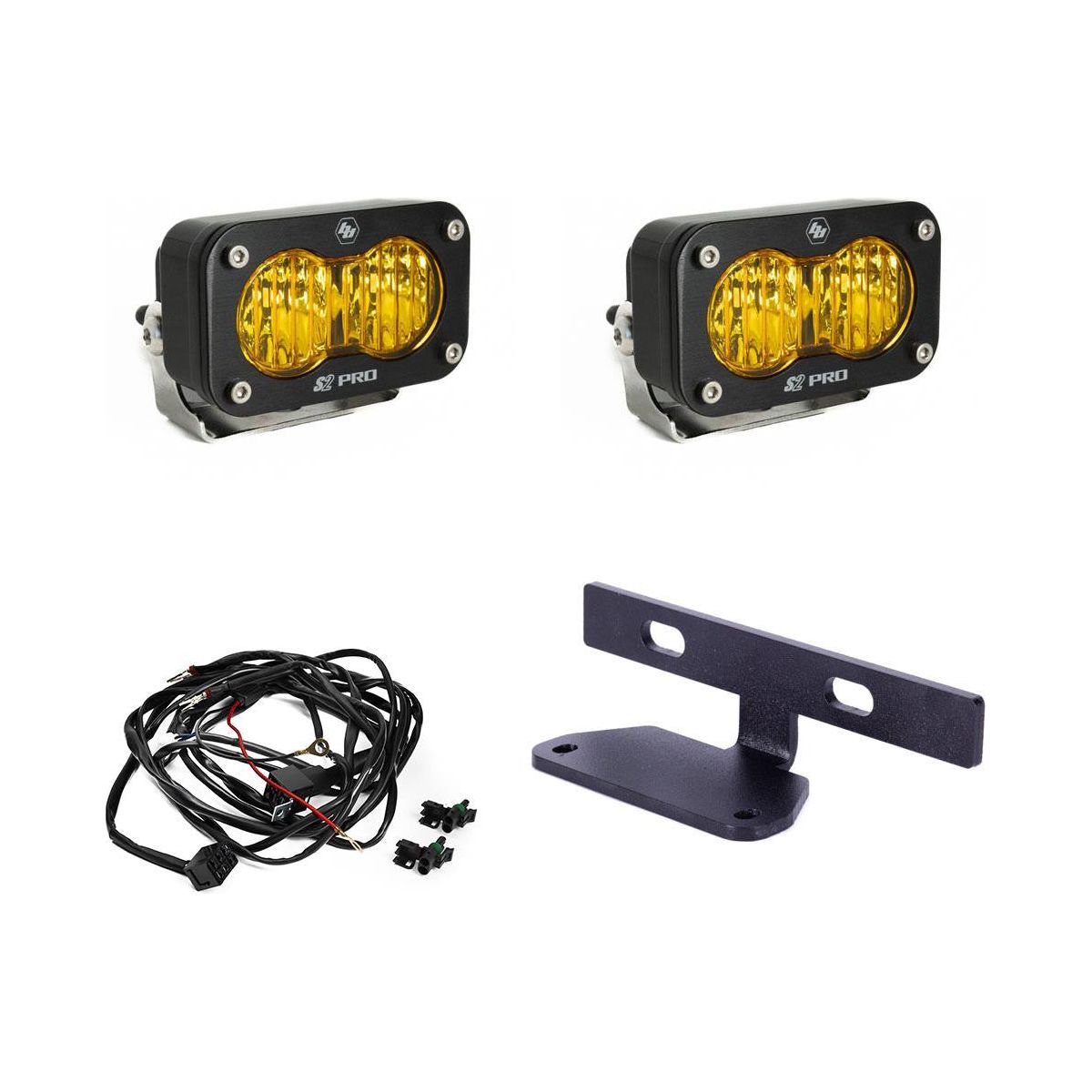 Introducing the Baja Designs S2 Pro Hood kit for the Can-Am Maverick R, providing enthusiasts with a stylish solution to seamlessly integrate forward lighting without compromising the vehicle's clean lines. Specifically designed to accommodate two S2 Pro LED lights within the hood scoop, this kit offers an impressive 2,245 raw lumens each at 23w, ensuring minimal impact on your electrical system. The package includes two S2 Pro LED lights, a mounting bracket, a wiring harness, and all necessary components for a hassle-free installation, guaranteeing a setup ready to tackle the trails. Experience the assurance of our 30-day satisfaction guarantee and lifetime limited warranty, providing unparalleled protection for your kit.