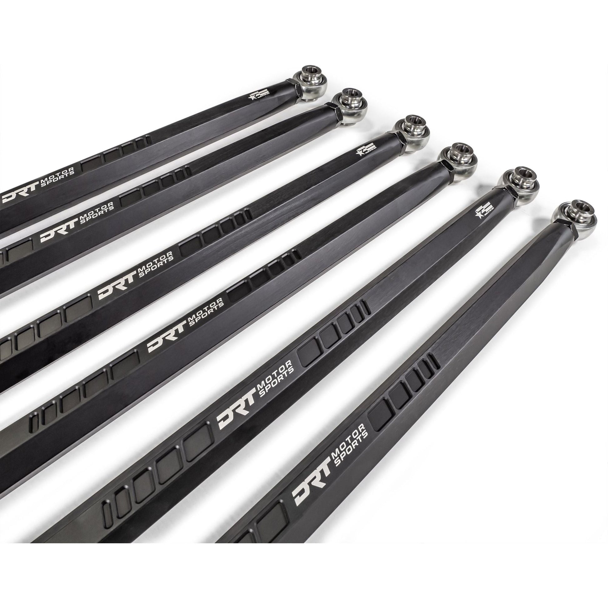 DRT Motorsports Can-Am Maverick R Billet Aluminum Hex Bar Radius Rod Kit. The DRT Motorsports Billet Aluminum Hex Bar Radius Rod Kit is designed to increase the strength and adjustability of your radius rods in a stylish package.