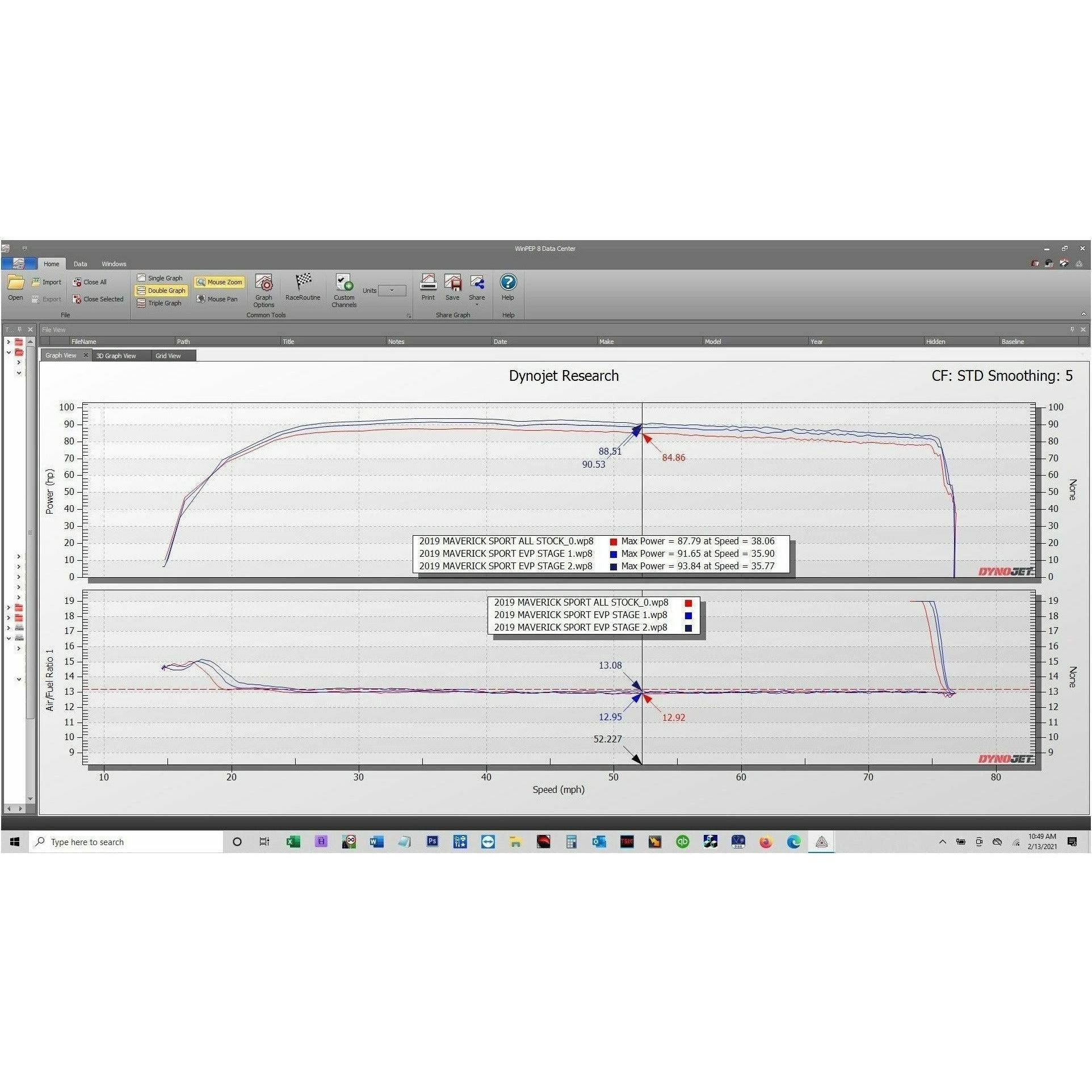 The Maverick Sport is a game changing vehicle - 1000cc in a 60" wide package. EVP has worked their magic and through tuning and exhaust components and have achieved significant horsepower gains through timing, fueling, torque limit modifications, rev limits, speed limits, etc. We also build additional safety into our tune by lowering the fan on temperature. The OEM fan on temperature is is too high (well over 200 deg F). In addition the fan on/off temperatures can be set for each customer depending upon where they live and the conditions typically ridden in. Other great features are added and/or changed to enhance the drivability and fun factor of the vehicle.