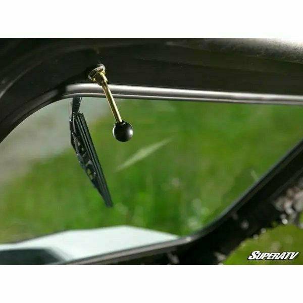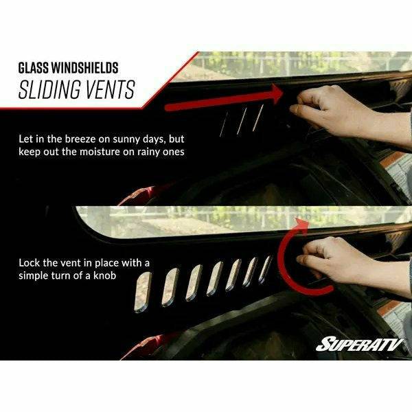 This Can-Am Maverick Sport windshield comes with extra goodies for your comfort. A manual wiper is strategically placed in front of the driver’s seat to keep the mud and rain away. Just move the handle above you to see clearly again. Hot or chilly? Control the airflow by loosening the knobs and sliding the vents open or closed. You can handle both easily without having to stop your wild ride.