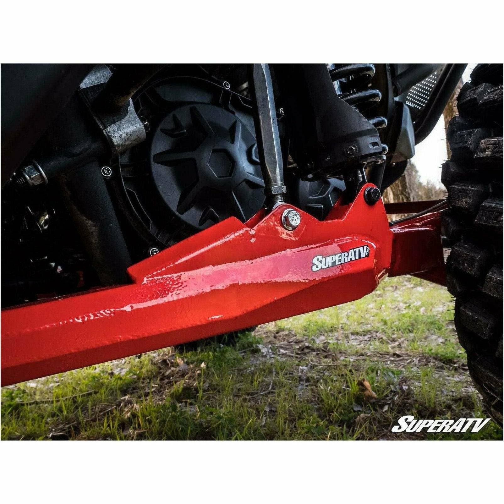 More Clearance, More Strength SuperATV’s Rear High Clearance Trailing Arms for the Can-Am Maverick X3 allow your X3 to do more. They give you 3” of clearance over stock trailing arms so you can cruise over bigger obstacles without getting hung up. We make them with 1/8” heavy-duty steel internal gussets and 1-1/2” x 1/8” wall steel DOM tubing and external gusseting. We made these trailing arms as strong as possible and gave them a Lifetime Warranty! That means you can worry about having fun and not worry about your suspension.