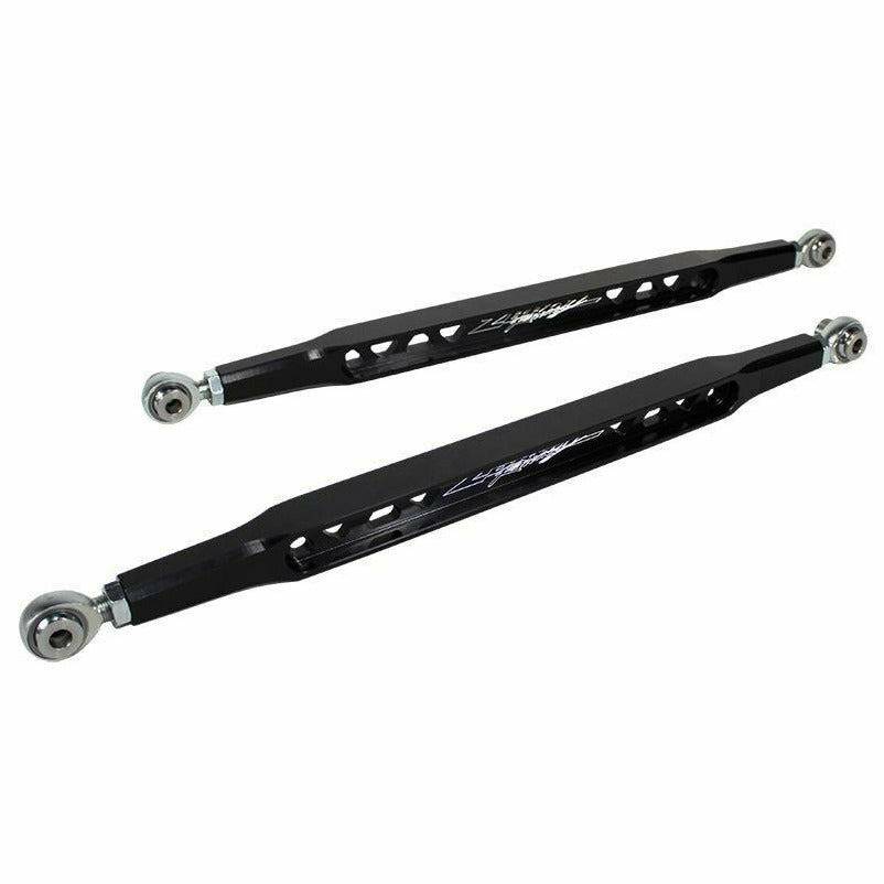 Our ZBROZ Intense Series® Lower Radius Rods were designed and built for the competitive racer, extreme trail rider, and avid rock crawler that require high clearance, strength & durability. Complete your rear look with our unique I-beam billet design. Available in both Raw Aluminum or Black Anodized. Make a statement while you upgrade your suspension to add extra clearance! Our unique I-beam Billet Radius Rods reinforce, add durability and bring the bling. Machined from solid bock 6061 aluminum and fitted with high performance heavy duty Heim Joints for camber adjustability. Comes in Raw or Anodized black to look great for miles and miles of use and abuse.
