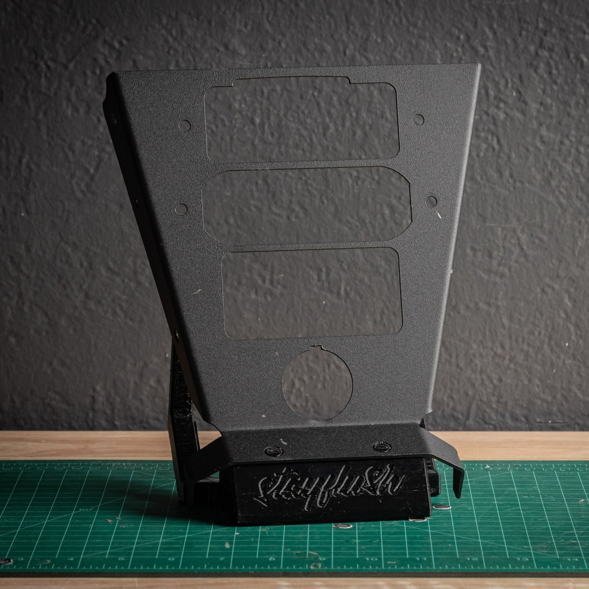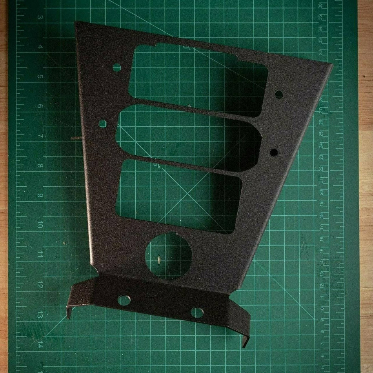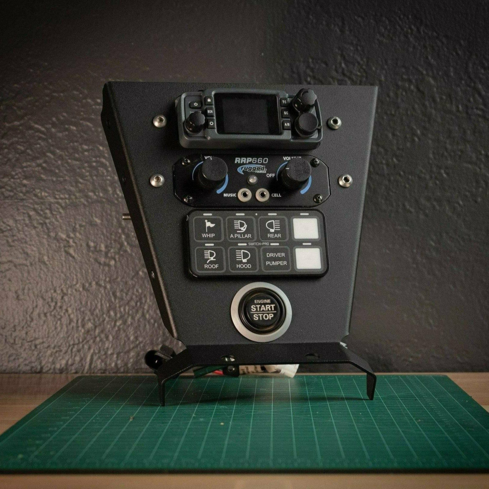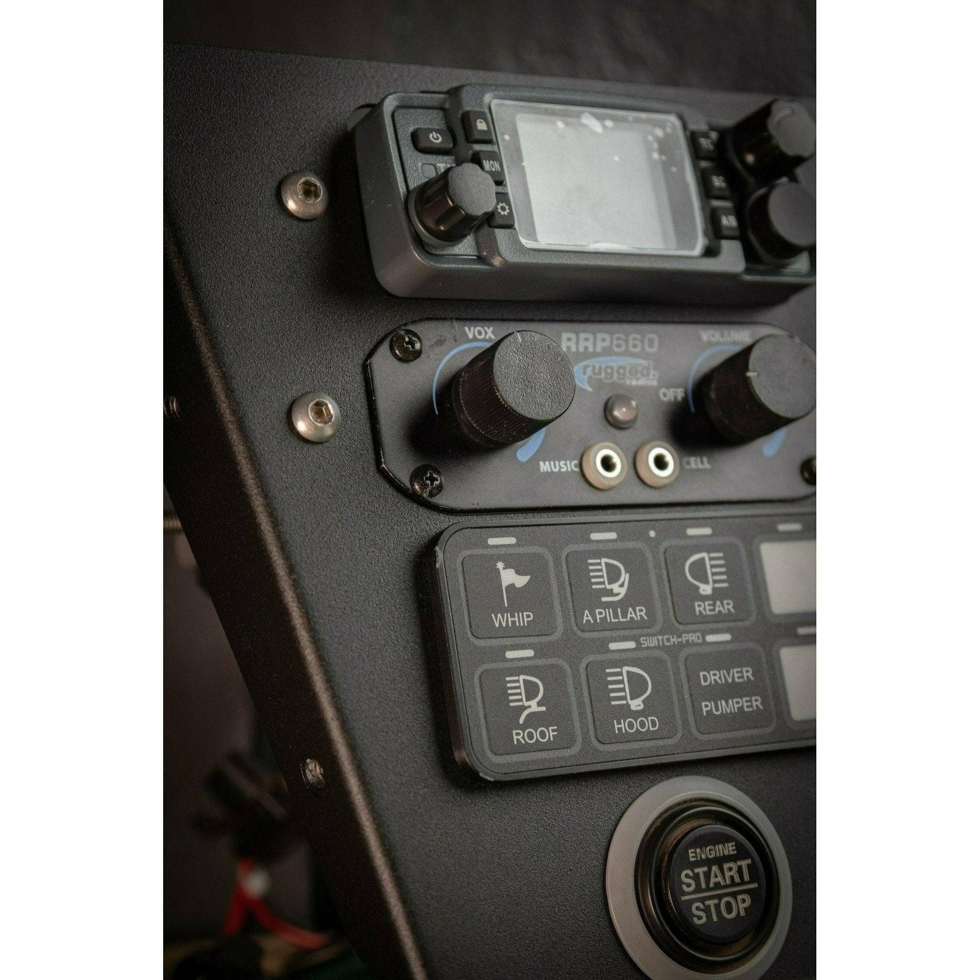 Flush Mount for Rugged Radios Setup and fit your Switchpro switch board, Panels and console are laser cut and powder coated with a texture coat for durability and flush fit. Guaranteed your radios and intercom will not stick out they will sit nice a flush for a good looking finish. Switch pro sits perfectly and mounts with hardware provided by Switchpro. Hardware for mounting your radios and intercom are included.