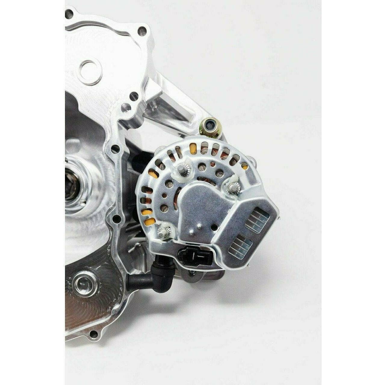 Our alternator kit adds an additional 75AMPS at operating speeds and roughly 30amps at idle combined with your factory stator output. Installation is all bolt on* and requires you to swap your existing stater over to our billet stator housing.