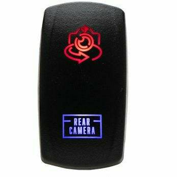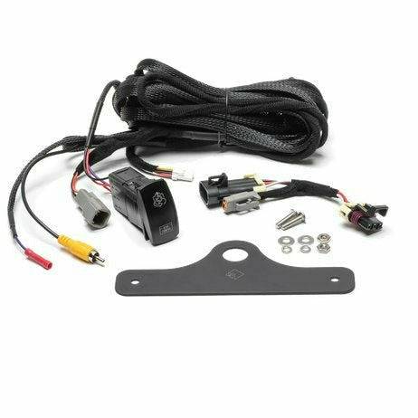 The MX-CAM-X317 harness provides everything needed to install the MX-CAM on select Can-Am® MAVERICK X3® models. The included bracket secures to factory attachment points and allows the camera to snap-in to place. A vehicle specific T-harness plugs directly in the taillight to supply power for the camera. Composite video is accessible through an industry standard male RCA for connection to any source unit with a video line input. PMX-3 and PMX-8 compatibility is ensured with an additional remote trigger, turning the camera on/off when shifting the UTV into reverse. The panel mount rocker switch features a blue backlit “rear camera” logo for easy identification and a red backlit camera icon to indicate the on/off status.