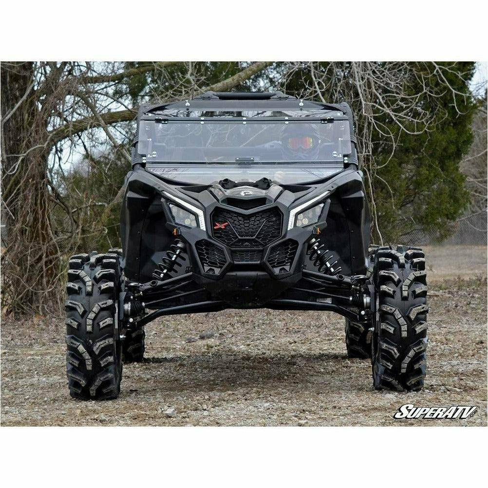 Ride in comfort and style all year long with SuperATV’s Scratch-Resistant Flip Windshield installed on your Can-Am Maverick X3. Rain? Don’t worry about it! Chilly wind? Not a problem! Our multi-stage latching mechanism gives you the versatility you need in all types of weather. Use it as a full windshield when you want to keep the mud or cold air out, a vented windshield when you want a nice breeze while also staying protected, or a half windshield on those nice days when you want full airflow.