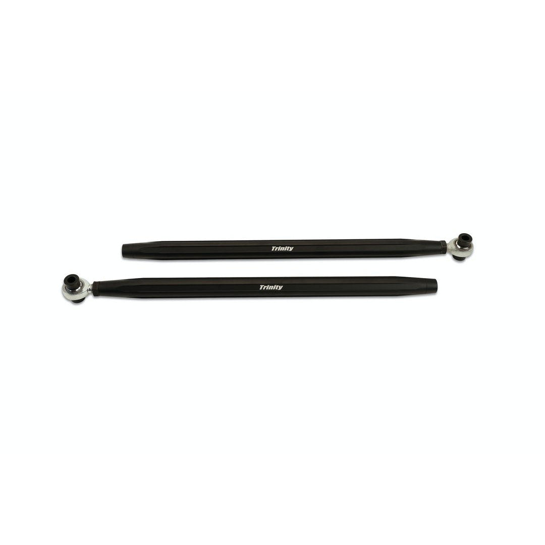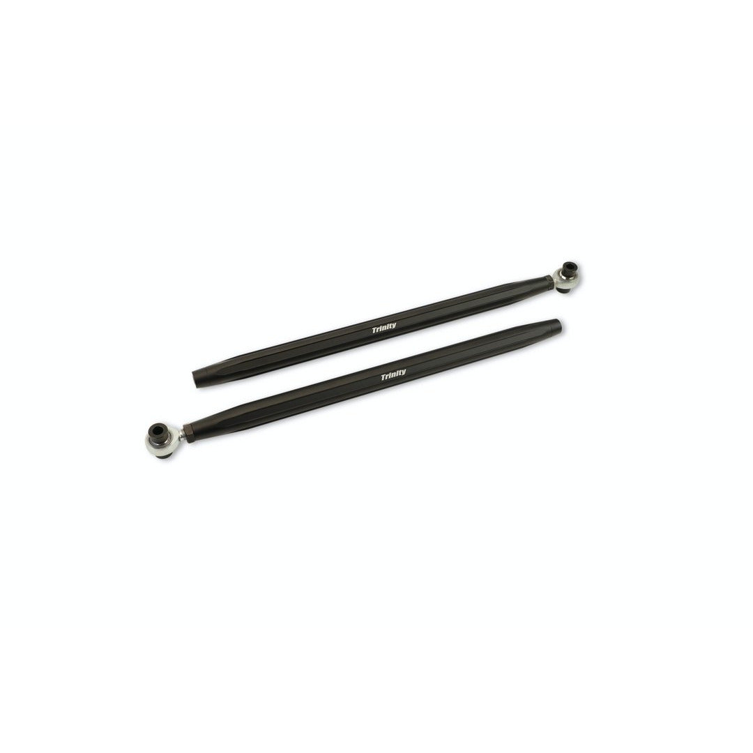 The stock tie rods have a tendency to bend under extreme driving. The Trinity Racing tie rods alleviate that issue. These tie rods have been torture tested in the desert, sand dunes, and even rock crawling! High-quality heims are used, and all proper misalignments are included to make the install simple. Available in anodized black with laser-etched Trinity Racing logo.