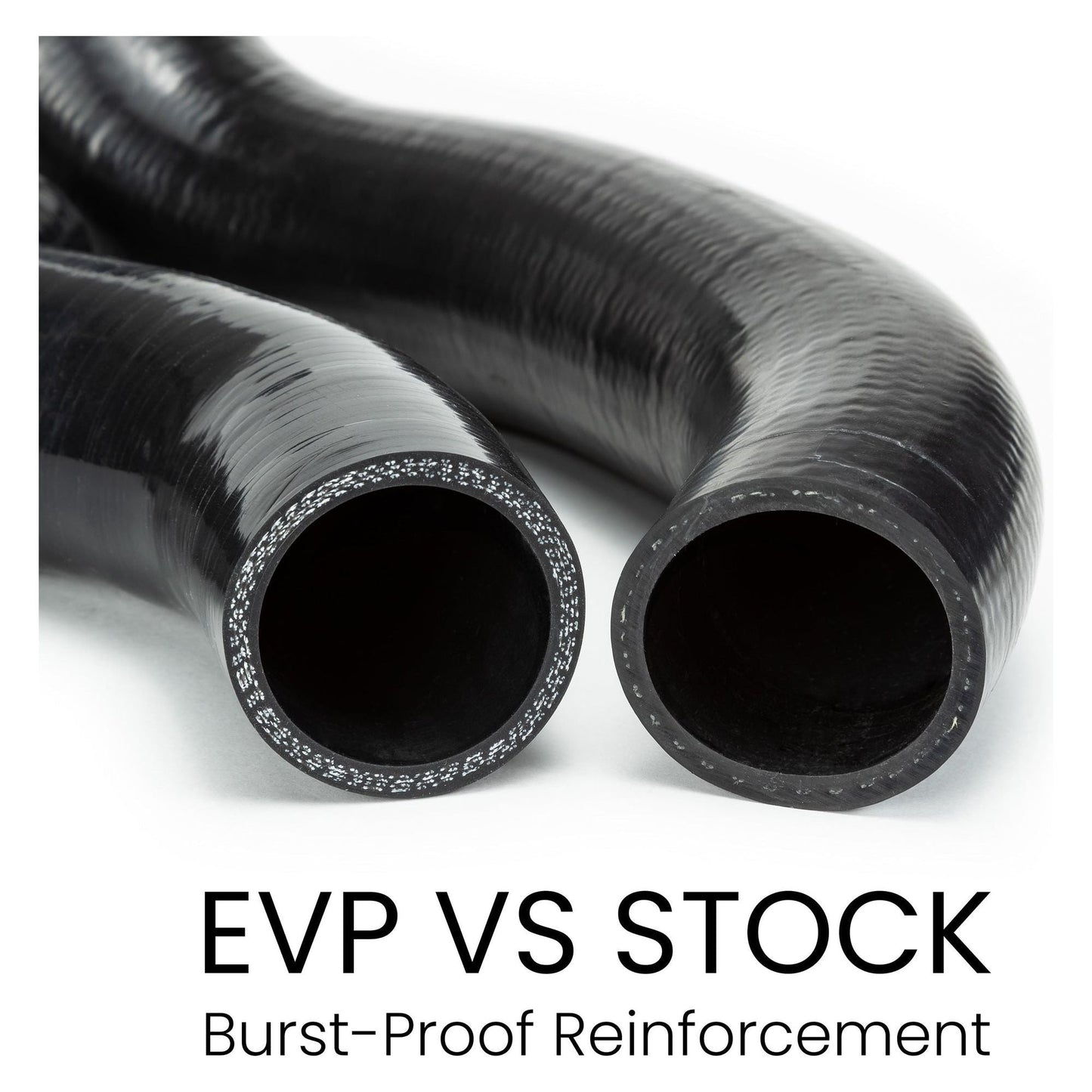 EVP silicone charge tubes can support over 80psi of boost and include quality T-Bolt clamps for a leak-proof connection.