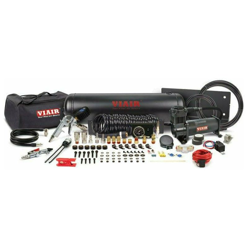 VIAIR’s Expedition High Pressure Onboard Air System is a pre-packaged compressed air solution that features a 100% duty cycle Stealth Black 444C compressor, a 2.5 gallon air tank, 180 PSI digital tire inflation gun, and all necessary components needed to install a working system, useful for multiple pneumatic applications.