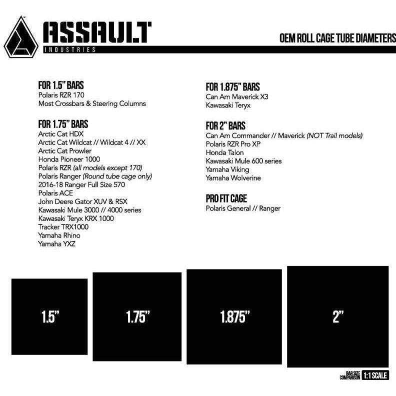 Fits any 1.5" 1.75", 1.875" (Can-Am Maverick X3) and 2" and Pro-Fit bar