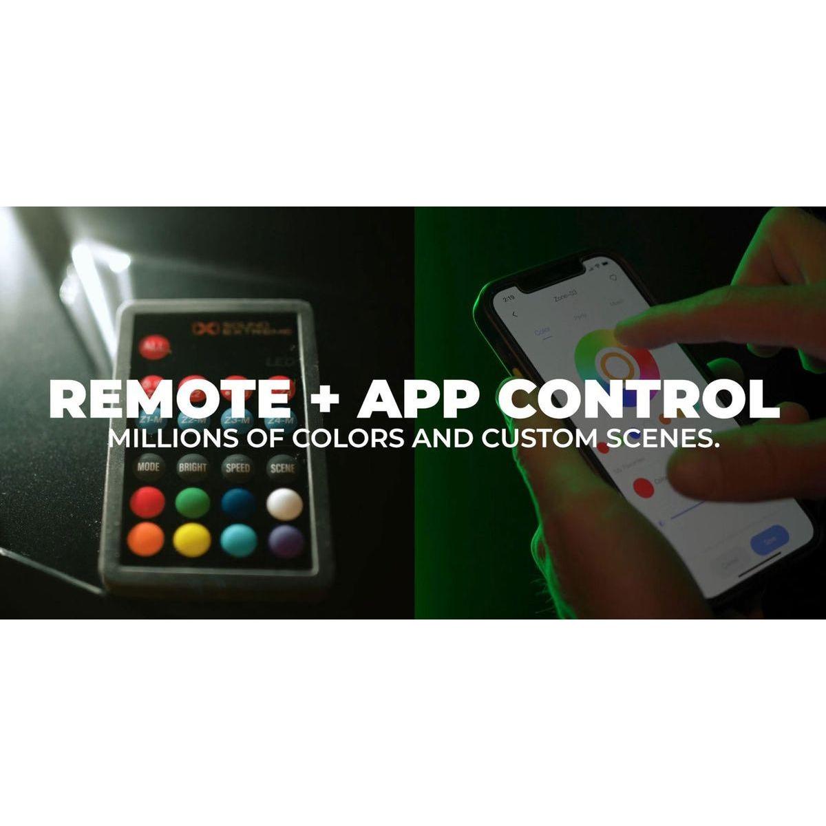 - Smartphone App: Unlike generic apps, SoundExtreme spent years developing our app to support more colors and patterns. Save up to 5 different LED scenes for later one touch access