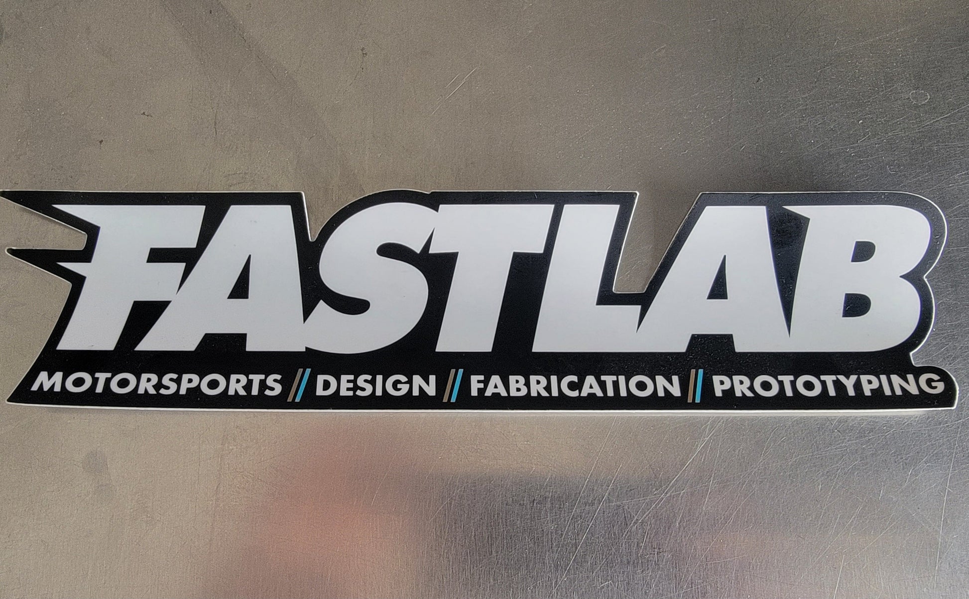 Fastlab Motorsports Logo Bumper Sticker. Durable Vinyl with a Matte Finish that is made to withstand dirt, scratches, rain and sun. The decal measures about 11.5" wide x 2.5" Tall