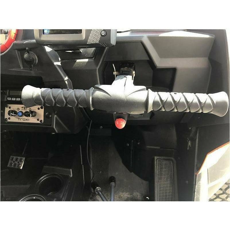 Easily mount a panel mount push to talk button at the end of the Grab Bar!