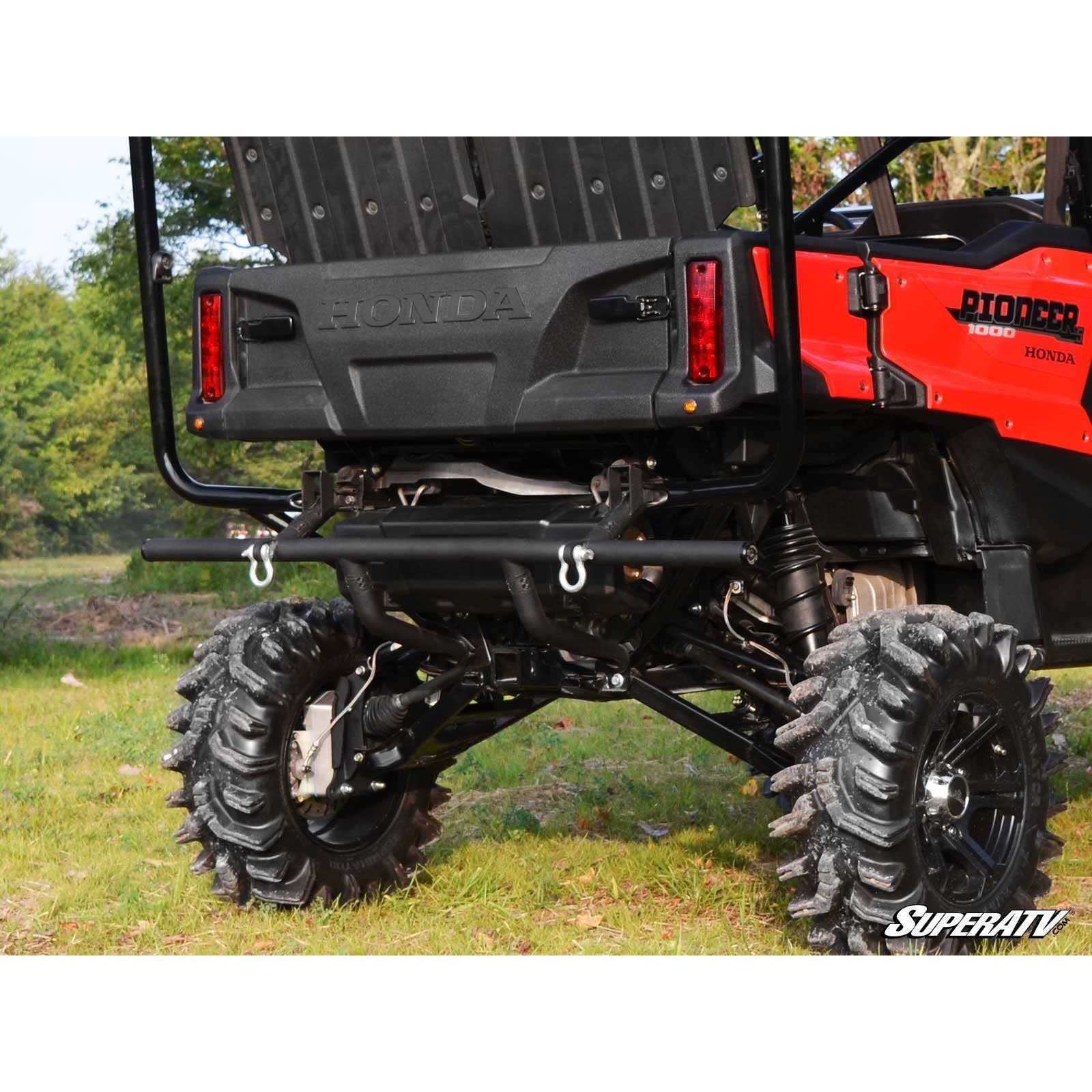 Get superior protection for your Honda Pioneer 1000-5 with a SuperATV Rear Bumper. The Pioneer 1000 is a working machine without much to protect its rear-end, so we made a stylish bumper to give you that much needed protection. With this sleek, low-profile bumper, you can count on superior rear end protection that provides full clearance for your bed and tailgate. This stalwart bumper features a UV resistant, powder coated finish that’s long lasting and compliments the cage and body. This bumper is constructed of 1.75” diameter and 2mm thick heavy-duty steel tubing, and its bolt-on mounting style is easy to install and includes all necessary hardware and instructions.