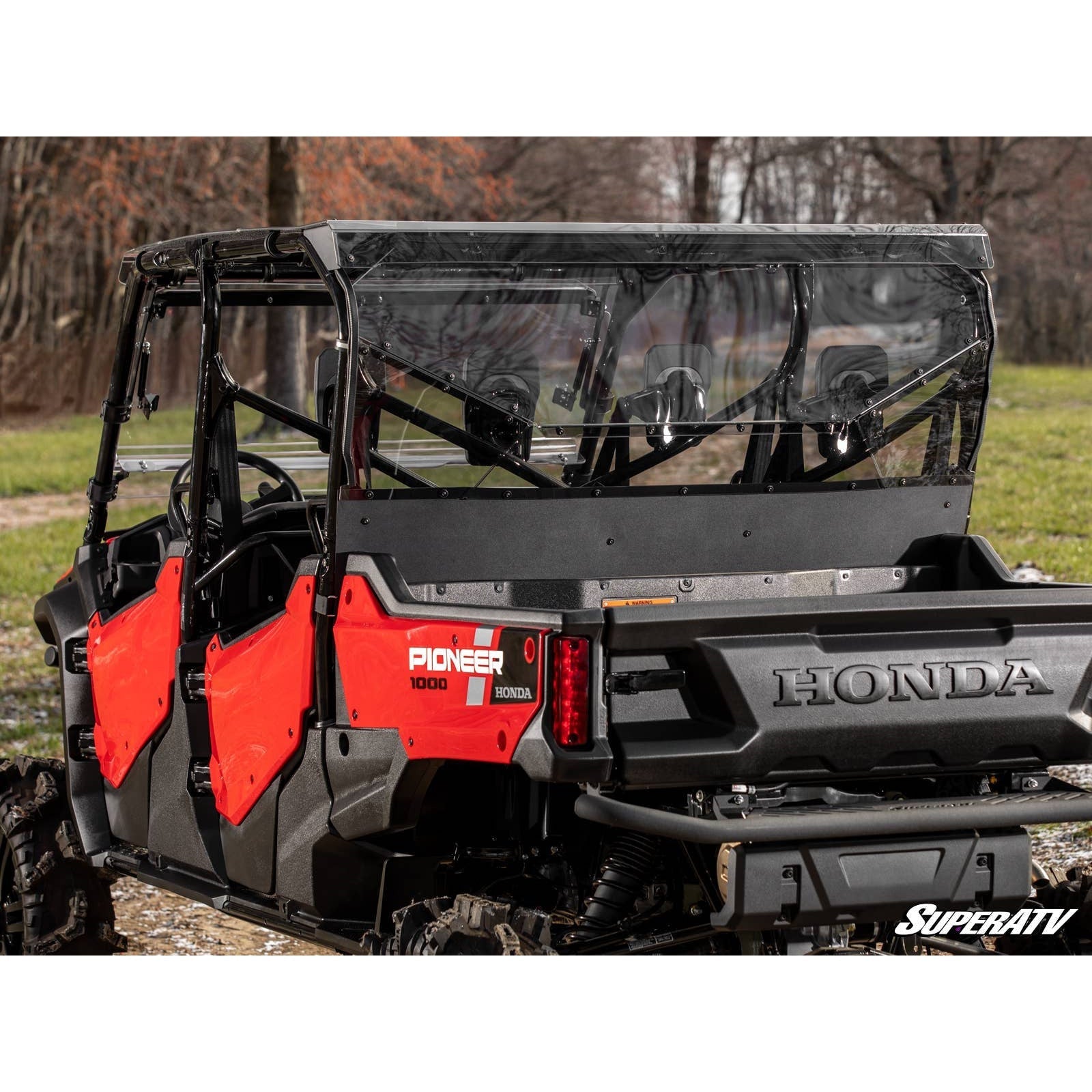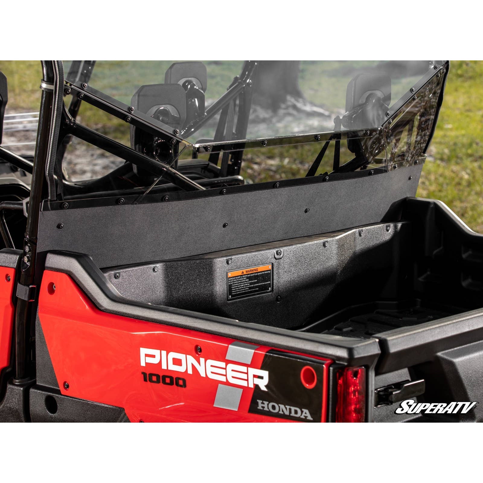 A top-notch SuperATV Rear Windshield is essential to your Honda Pioneer 1000-6. It provides protection from your own rooster tails, prevents dust from being sucked into your cab (when running a front windshield), and doesn't restrict you from dumping your bed. Plus, it's lightly tinted to deflect the sun's glare. With its durable construction, you can trust this windshield to handle the trail's and mother nature's demands.