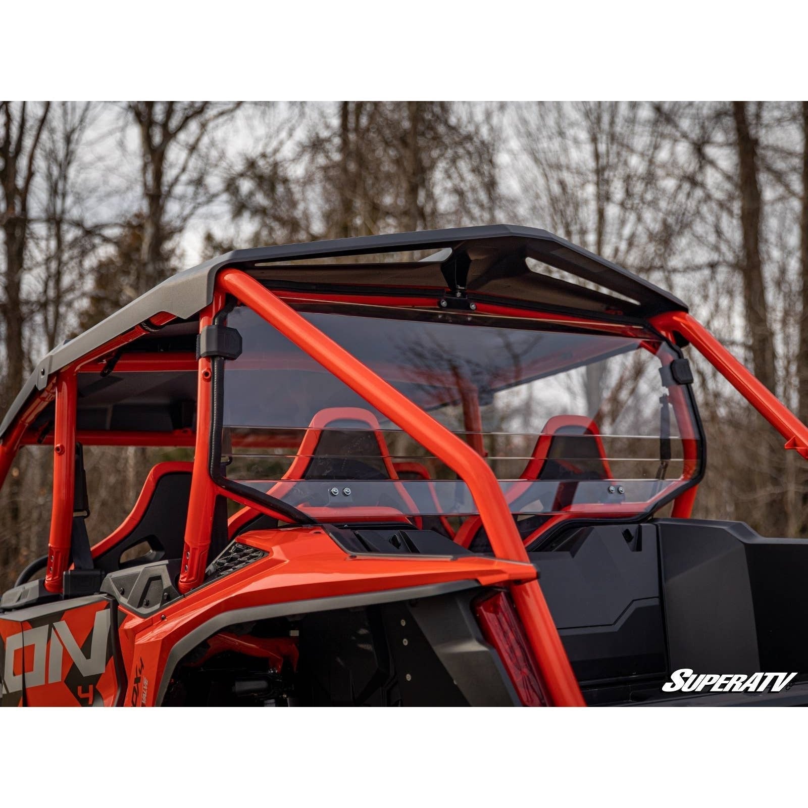A rear windshield might be the last thing that comes to mind when you think about making your cab more comfortable. After all, it’s behind you, so how much of a difference could it make? The answer: a lot. Installing SuperATV’s Rear Windshield on your Honda Talon 1000 makes a lot of difference. A quality rear windshield doesn’t just shield against the elements. It also blocks any rocks and debris that get kicked up by your rear tires, and it prevents that annoying suction sound that happens when you run a front windshield alone.