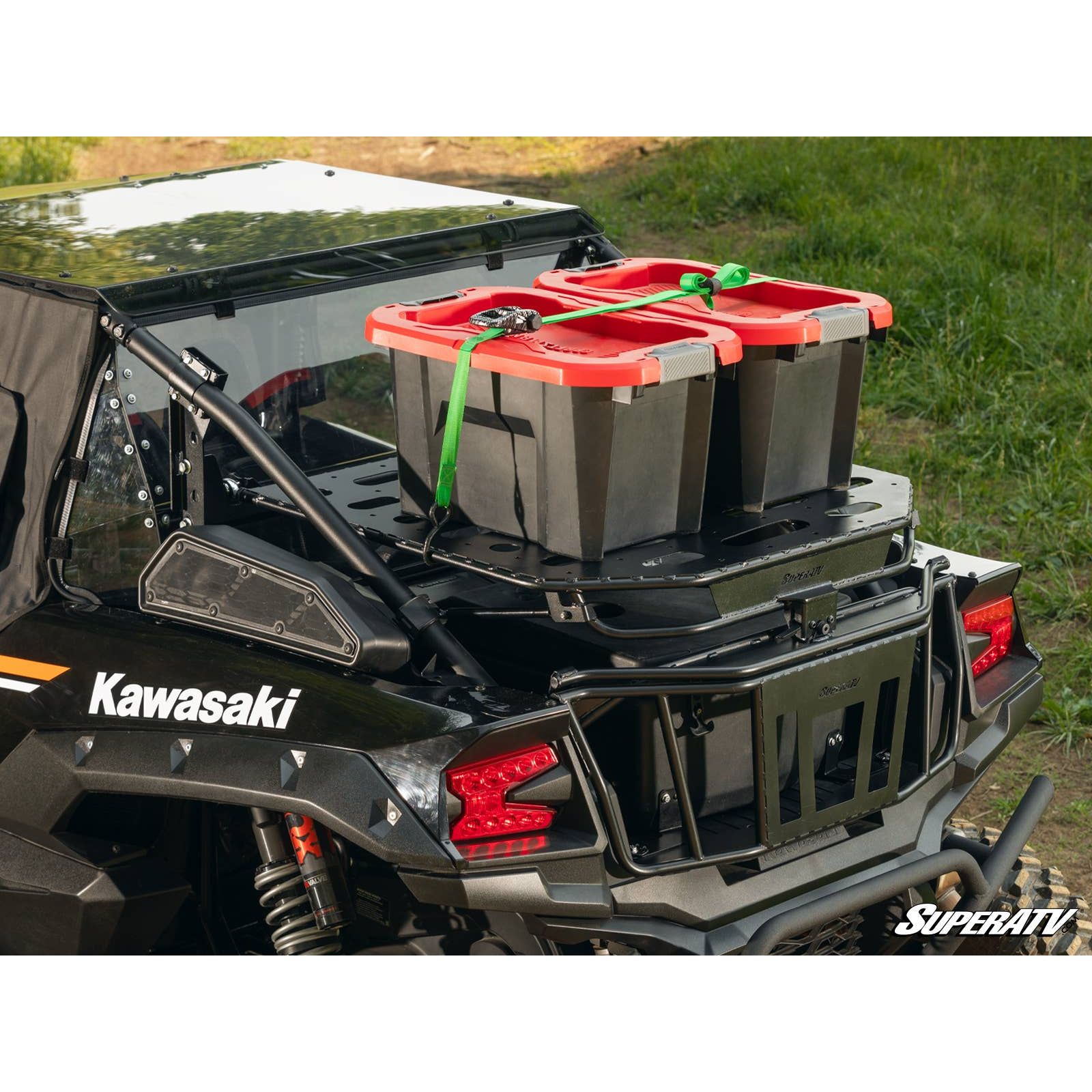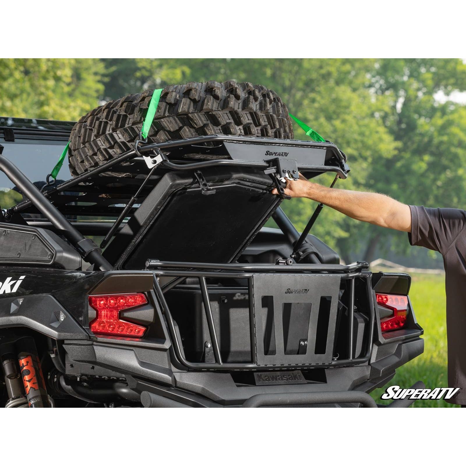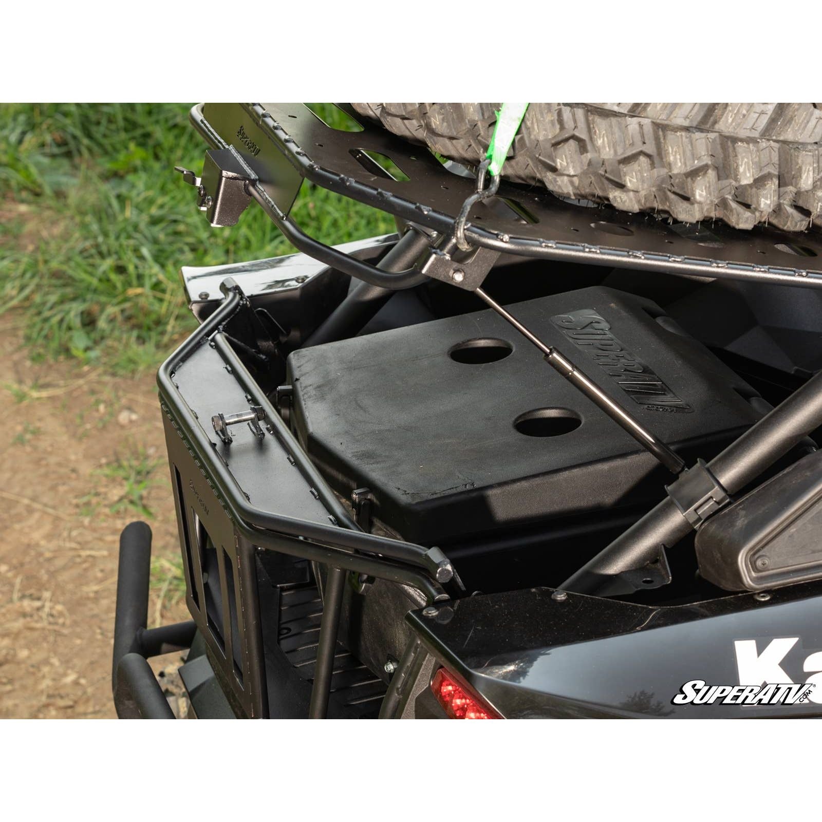 Your KRX is one lean, mean, trail-eating machine! But when it comes to storage, well, your options are pretty slim. Get SuperATV’s Cargo Rack Alpha for your Kawasaki Teryx KRX 1000. It mounts securely to your cargo bed and uses gas struts that make it easy to raise and lower it whenever you want. You get more storage without obstructing your rear view or limiting bed space.