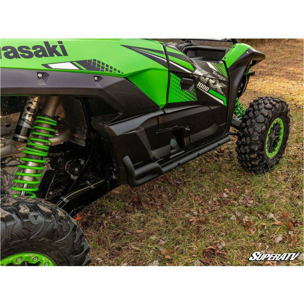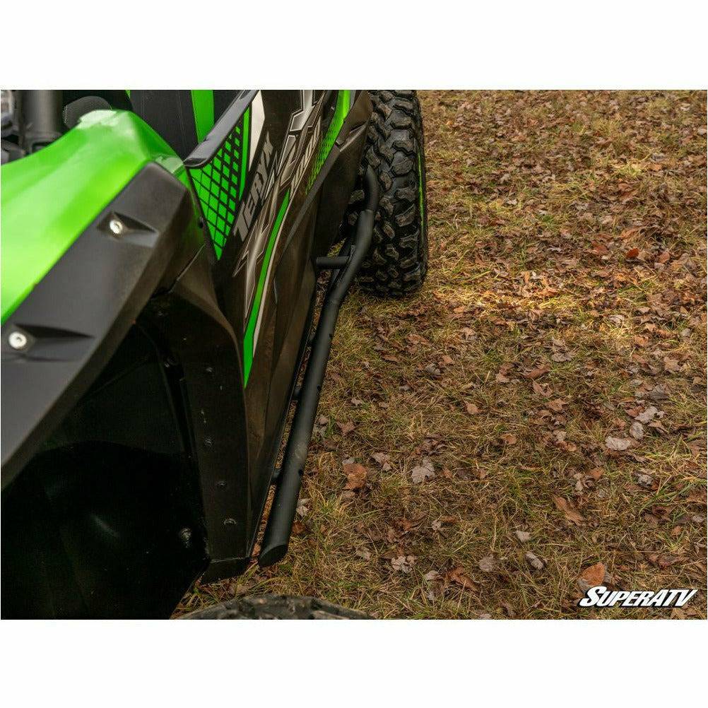 Ride hard. Go fast. Have fun. That’s all you should be worrying about when you’re behind the wheel of your Kawasaki Teryx KRX 1000. What you shouldn’t have to worry about is whether that crazy sharp turn just scuffed up your plastic. That’s where SuperATV’s Heavy Duty Nerf Bars come into play! They fit the body of your KRX perfectly, adding a touch of style while soaking up abuse from all the trail hazards you encounter.