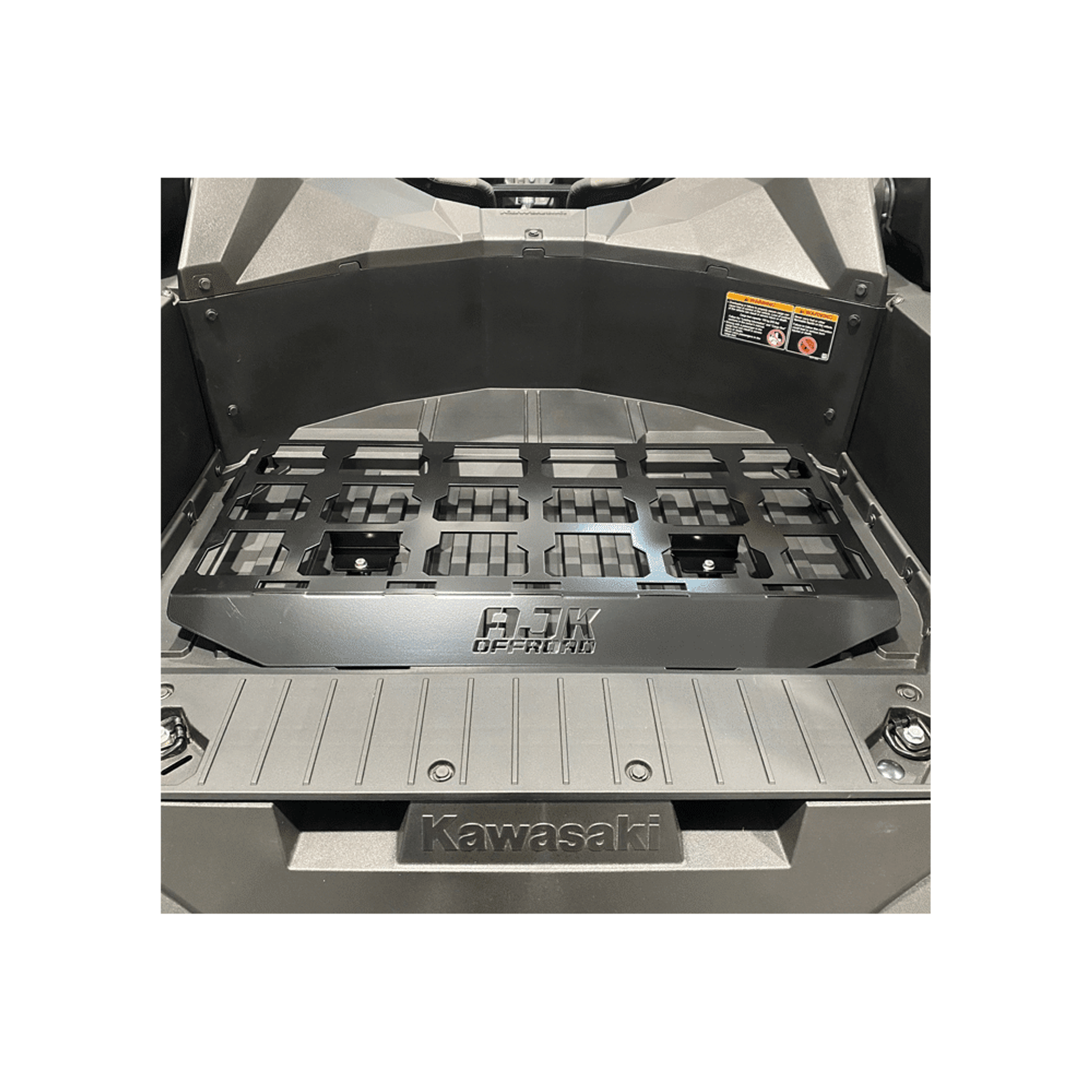Our Kawasaki KRX Milwaukee Packout Mount is the perfect storage solution. This mount uses existing mounting holes so no drilling is required. Simple remove four bolts and replace them with the supplied hardware. This is a very simple install. We CNC Laser cut our Milwaukee Packout Mount from 10 gauge P.O. steel then powder coat it black.
