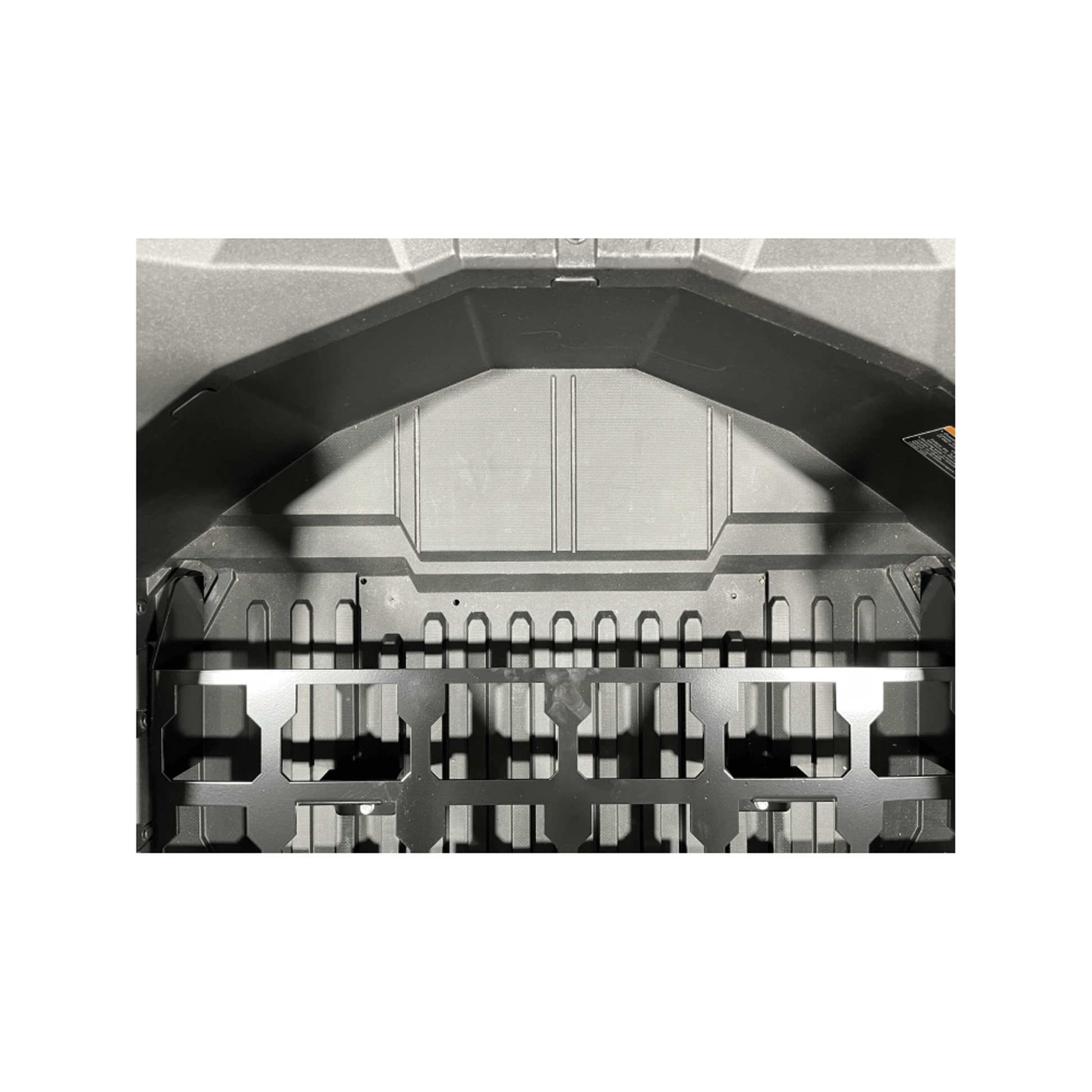 Our Kawasaki KRX Milwaukee Packout Mount is the perfect storage solution. This mount is compatible with the factory installed subwoofer. We CNC laser cut our Kawasaki Packout Mount from 10 gauge P.O. steel then powder coat it black. For installation, we use the existing bed holes so no drilling is required. Simply remove four bolts and replace them with the supplied hardware. This is a very simple install.
