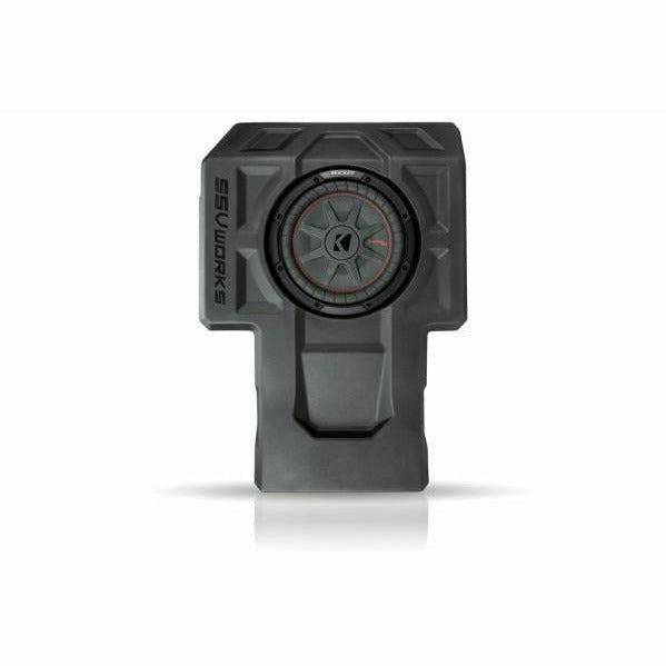 SSV Works custom molded sub enclosure is designed for a 10" subwoofer and easily installs behind the passenger seat. NO CUTTING REQUIRED, the box simply bolts in and provides the proper airspace required for a 10" sub.