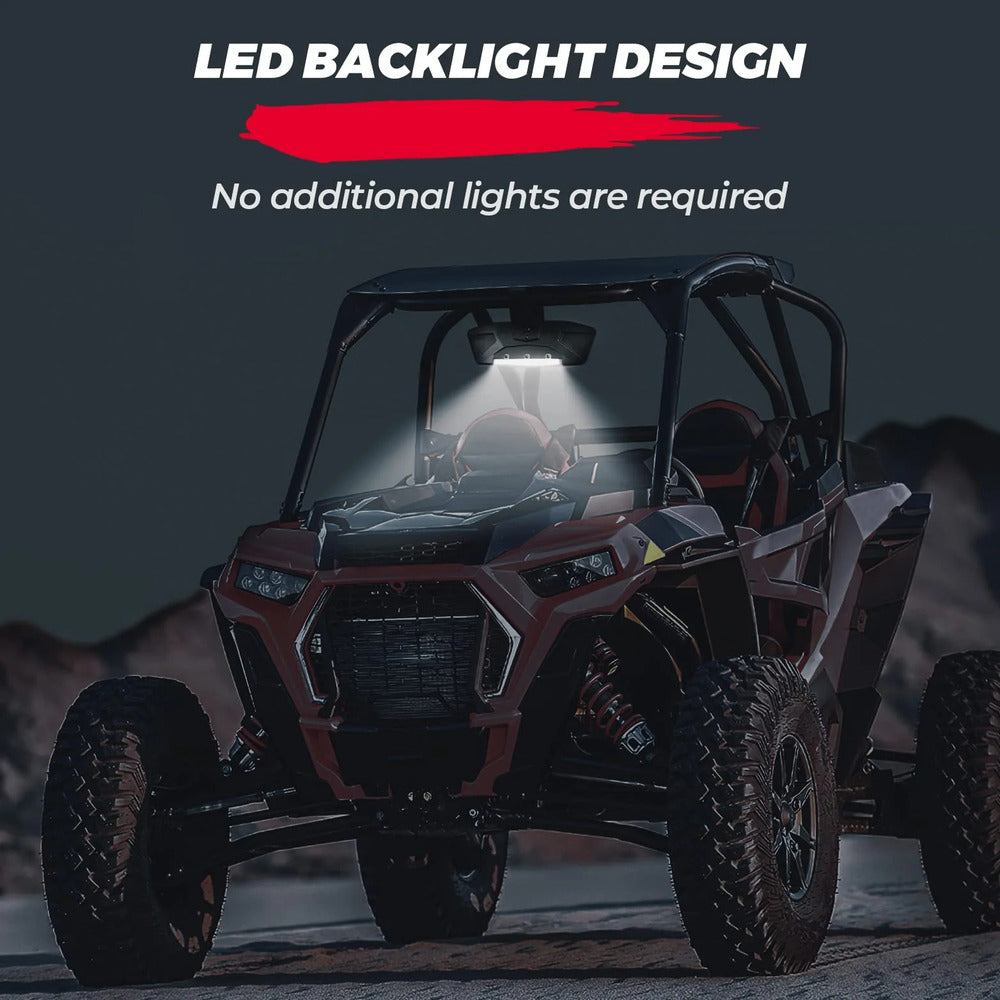 UTV center mirror with LED lights with aluminum alloy shell, durable, effective impact resistance, ultra-wide-angle high-definition rearview mirror design, the field of view is wider than ordinary flat mirrors, timely reflect road conditions, reduces blind spots, and ensures driving safety
