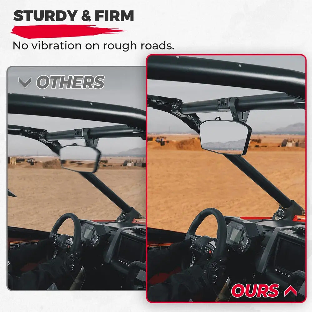 This LED lights utv mirror is easy to install, no need to hit holes, just tighten the bolts to fix the bracket on the roll cage, and it adopts the latest integrated design of the rearview mirror and rocker switch. Keeps mirrors steady even on rough roads