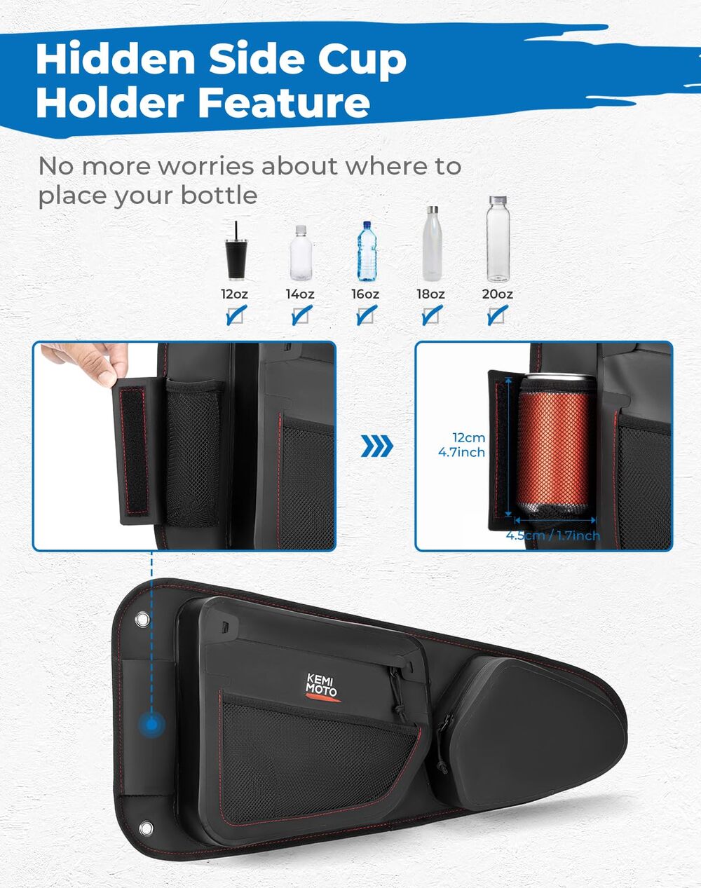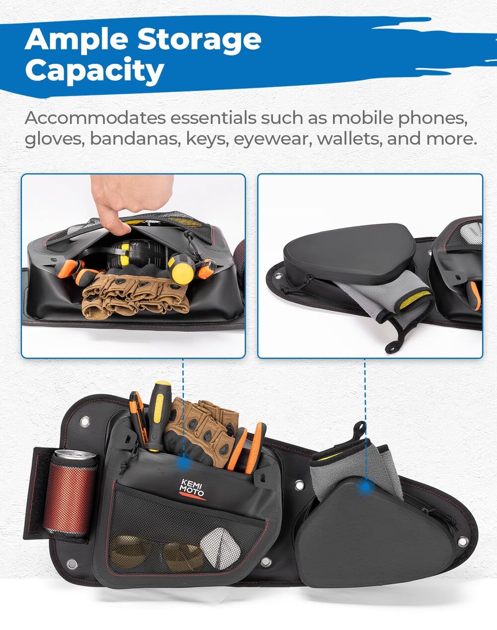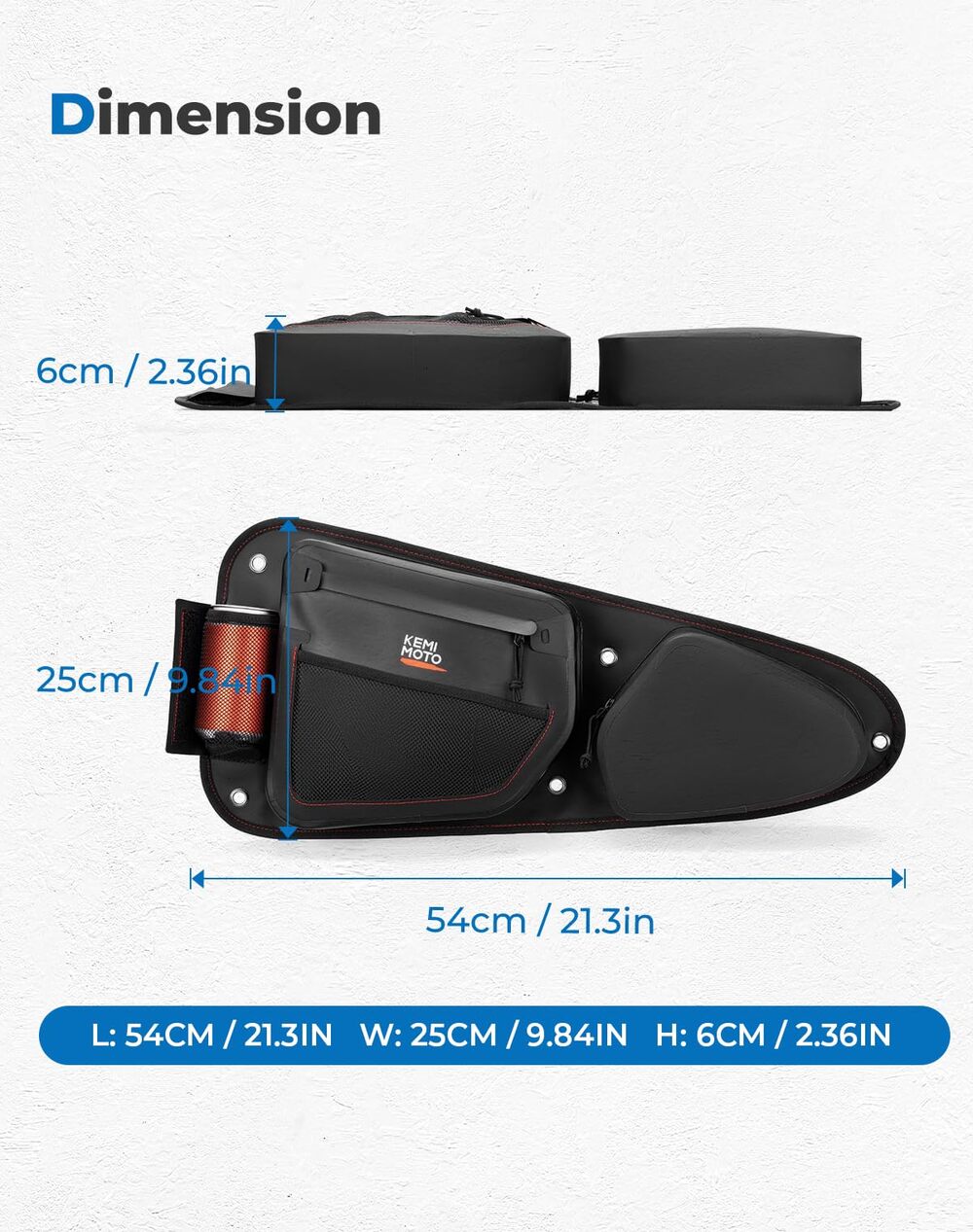 Made with durable 600D TPU and rated at IPX6, KEMIMOTO UTV front door bags are your shield against the elements, repelling water, dust, and debris. Clean-up is a breeze – just wipe away any mess. (Note: These bags aren't compatible with models equipped with door speakers.)