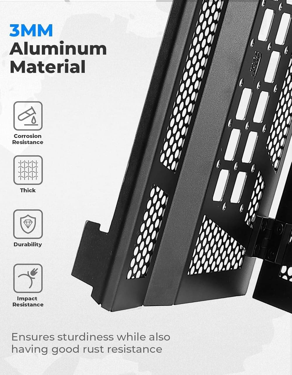 Our ventilated engine cover is made from 3mm thick aluminum, with a unique hole pattern that's strong and long-lasting. It resists rust and corrosion well, making it perfect for outdoor and tough environments.