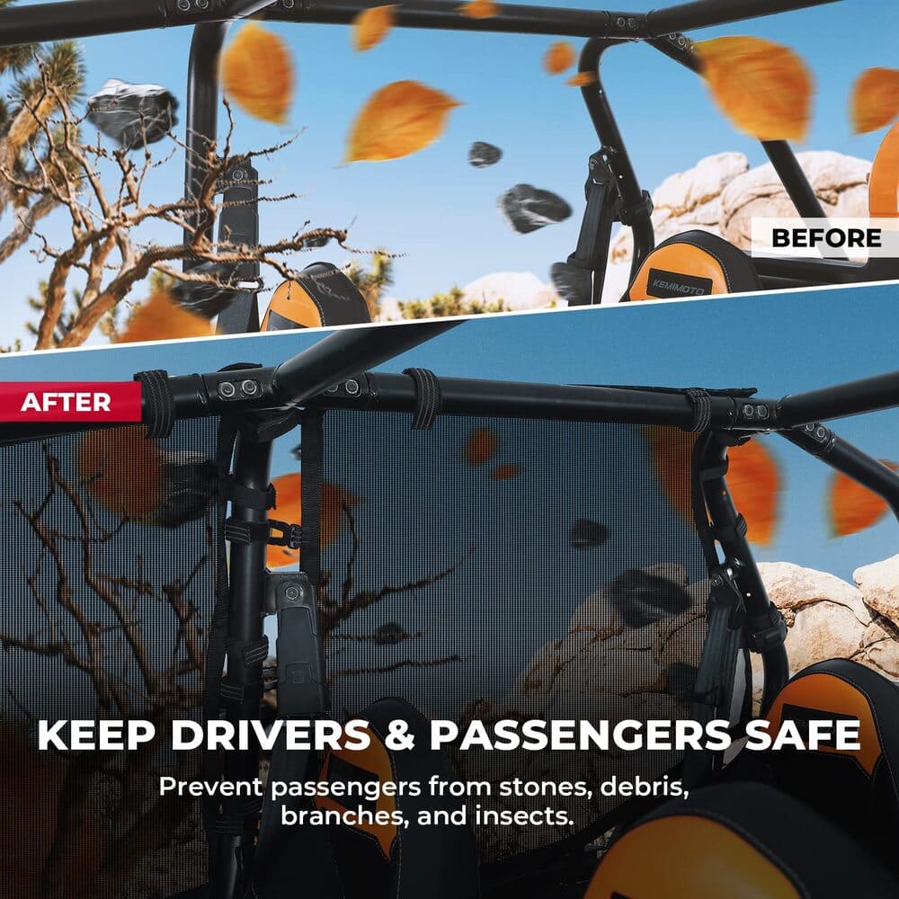 This UTV window mesh can prevent gravel and branches from entering the UTV