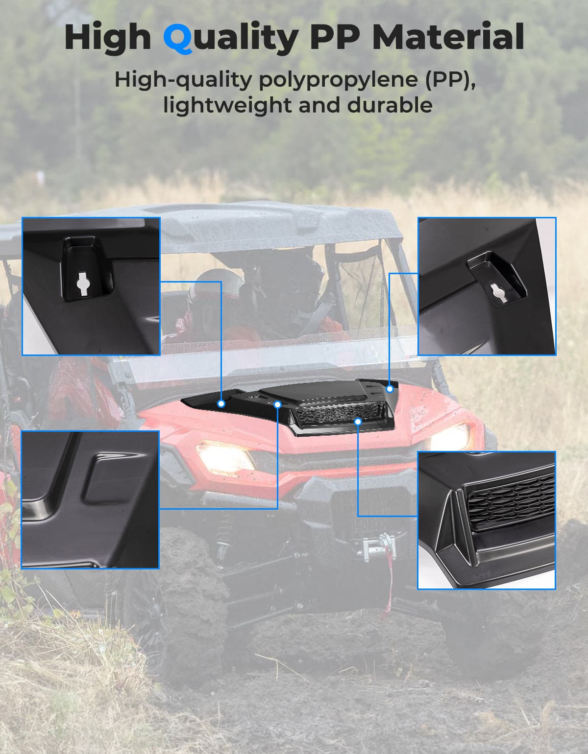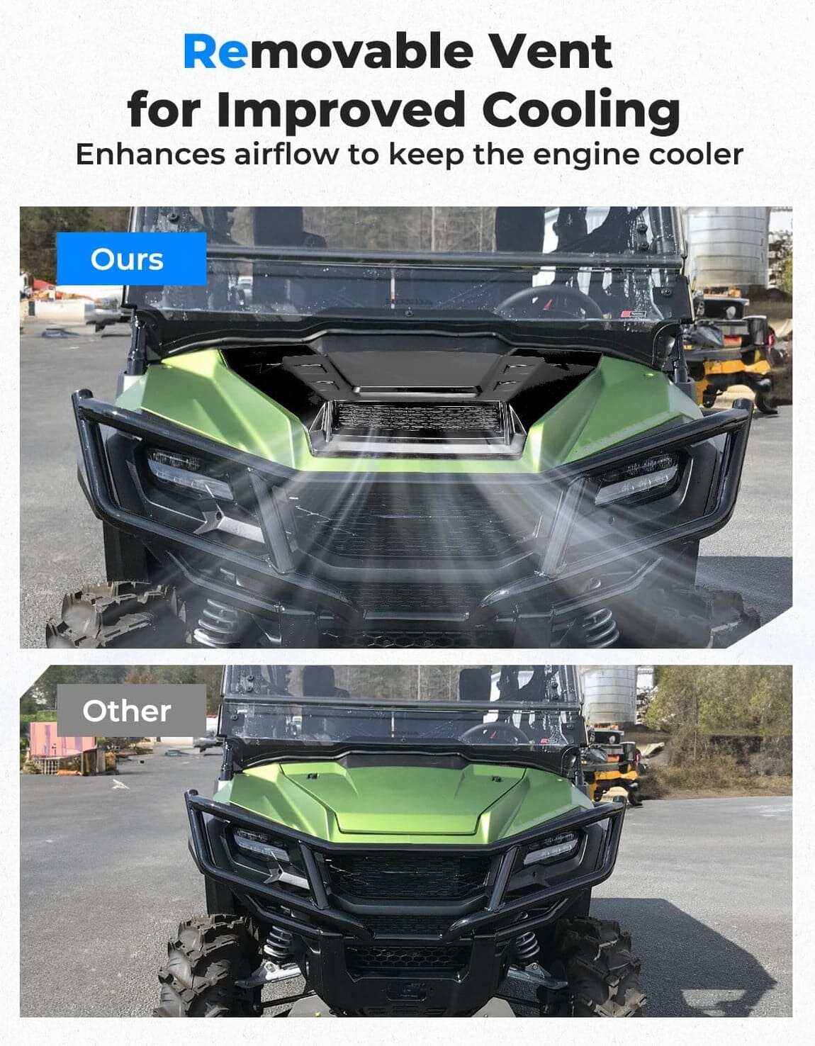 The front hood incorporates an advanced air duct design and grooved radiator, significantly improving heat dissipation and extending the lifespan of your SXS