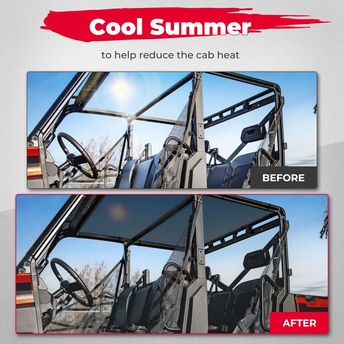 UTV soft top net protects you from trees and bushes and can also prevent dirt from accumulating in the cab. Also, you might be concerned it would flap when you drove but there was no flapping!