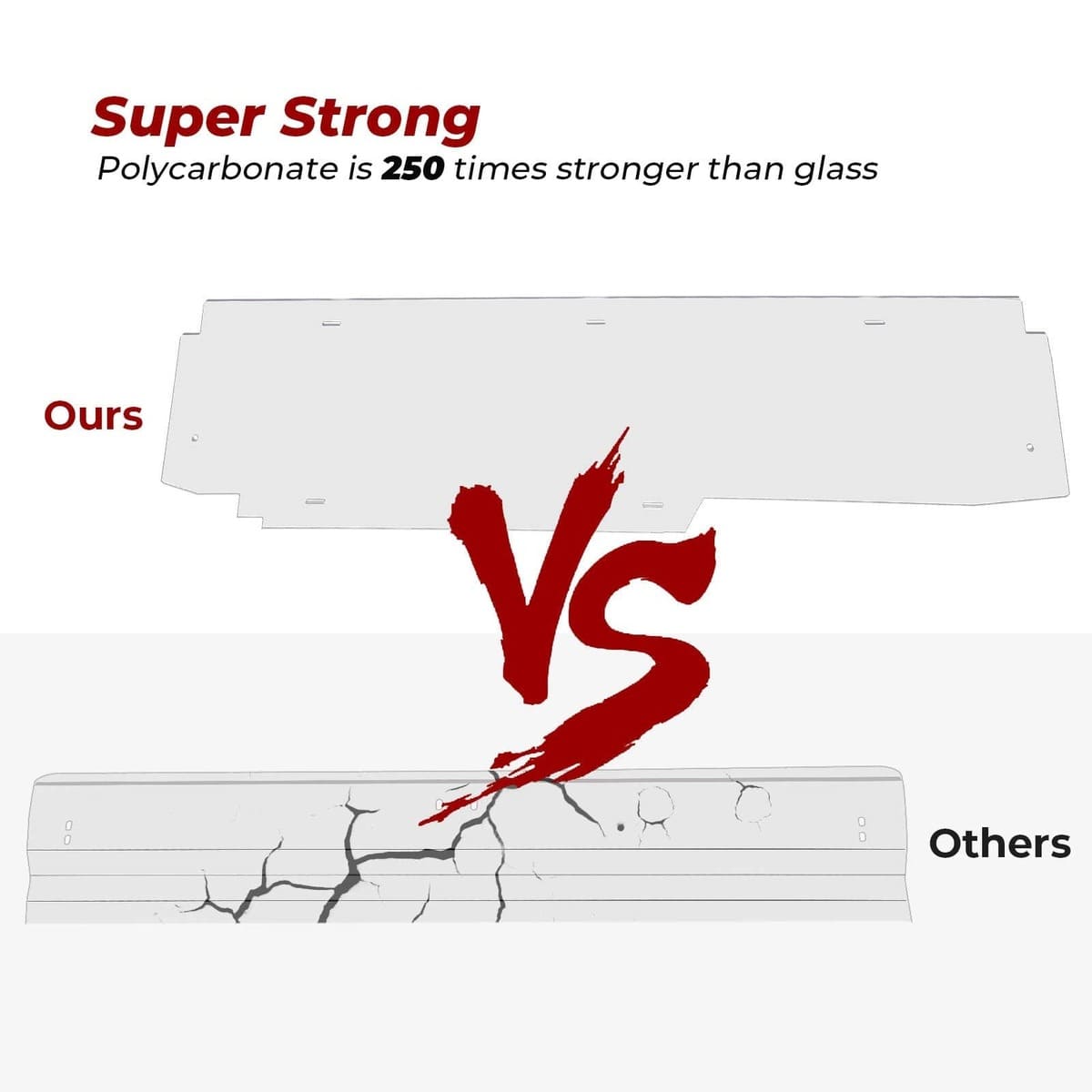 The windshield is made of high-quality 1/4" thick polycarbonate material, which is resistant to cracking, breaking, and fading.