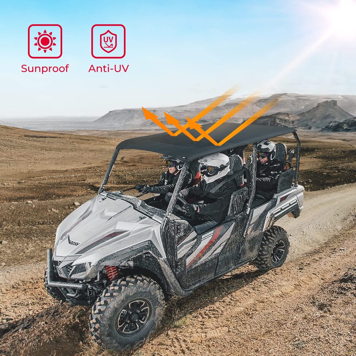 Easy to install in a short time. The roof with velcro strap just need wrap over the top frame of your utv and fasten straps. All designs ensure that the soft top is firmly fixed, stable and fits your machine better.