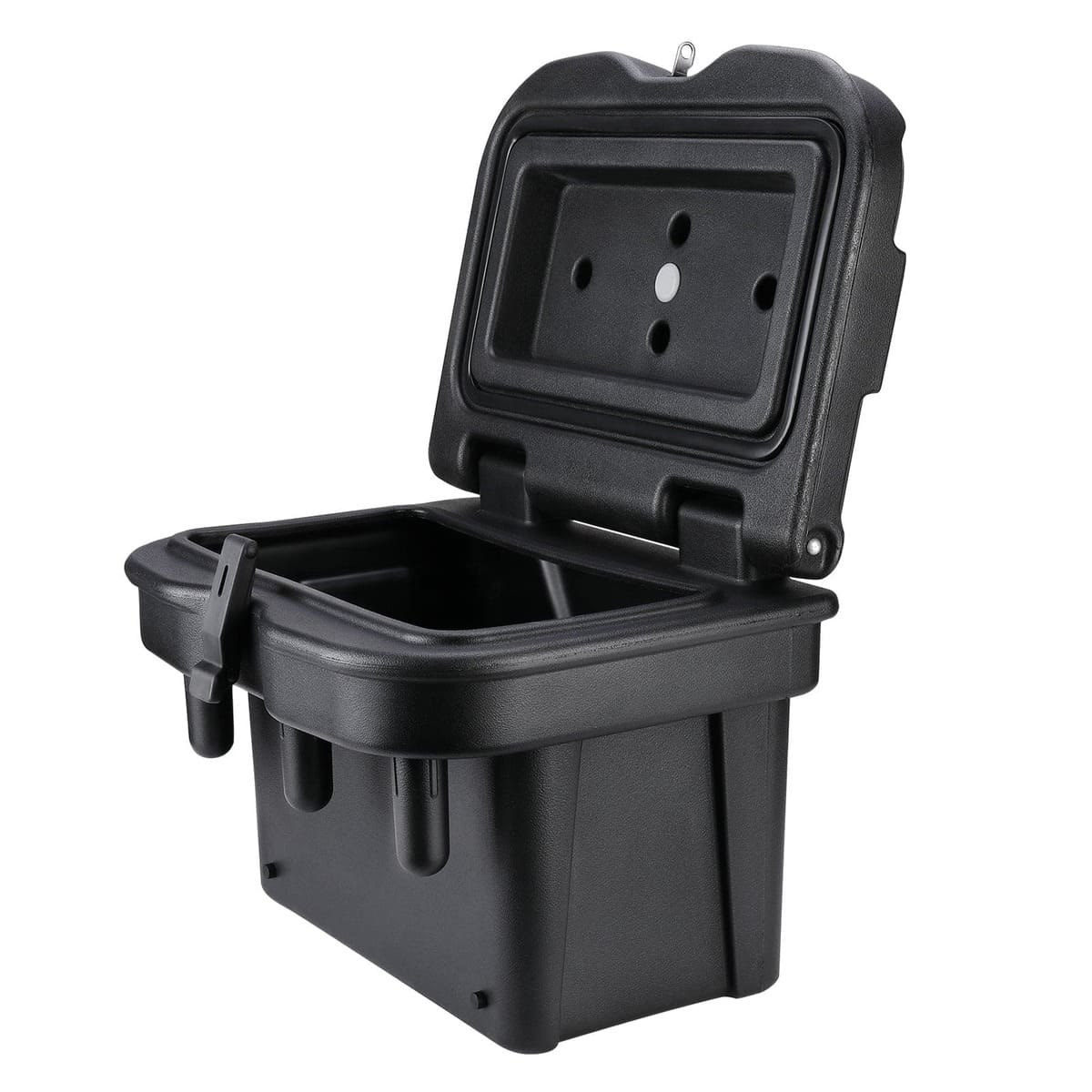With a textured black, heavy-duty lid made of durable LDPE low-density polyethylene material, this box for cargo storage can withstand 75kg and has improved leak and pressure resistance. A combination lock and wire rope might help safeguard your box from theft.