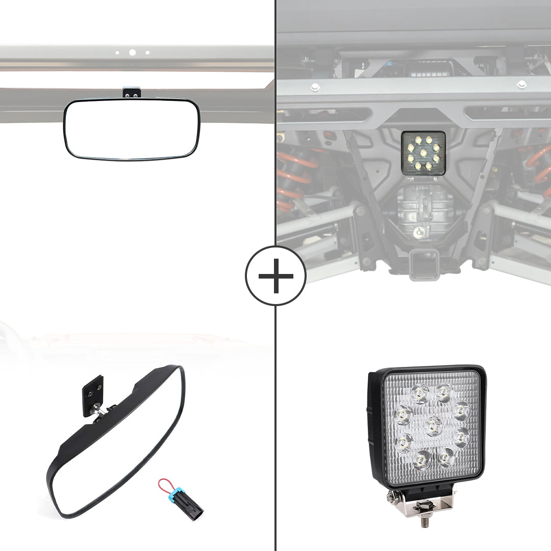 Kemimoto '18-'24 Polaris Ranger XP 1000 Rear View Mirror & 40mm Wafer Light