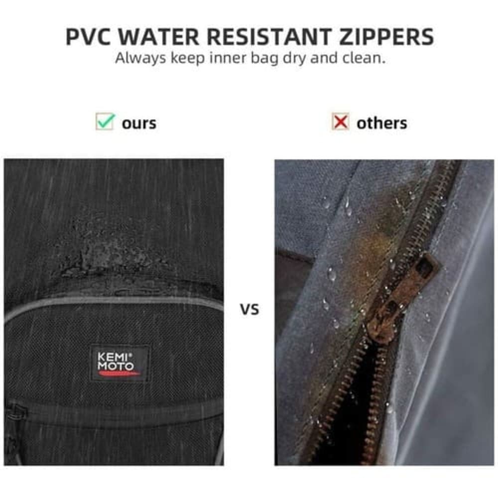 We use PVC materials to make the water-resistant zippers sturdy enough. Always keep the inner bag dry and clean.