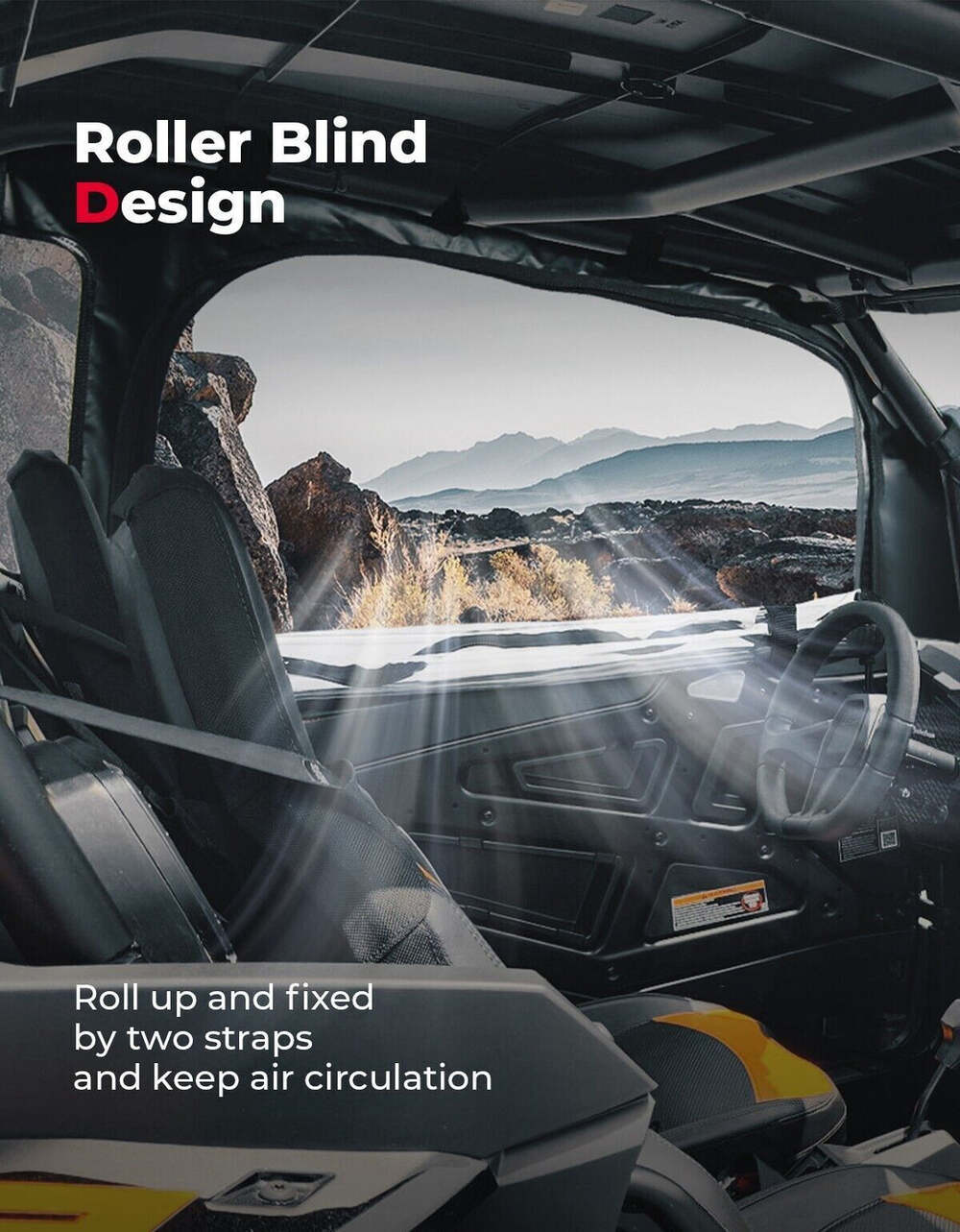 Fall and winter are coming, are you still sitting on your UTV shiverings? Maybe you need these soft upper doors to keep the cold out for you. It can prevent wind, leaves, and debris from flying directly into your face, keeping the interior of the car dry and tidy.The door is detachable and can be opened for ventilation when it is hot and turned off for warmth when it is cold, ensure the safety and comfort of your journey.