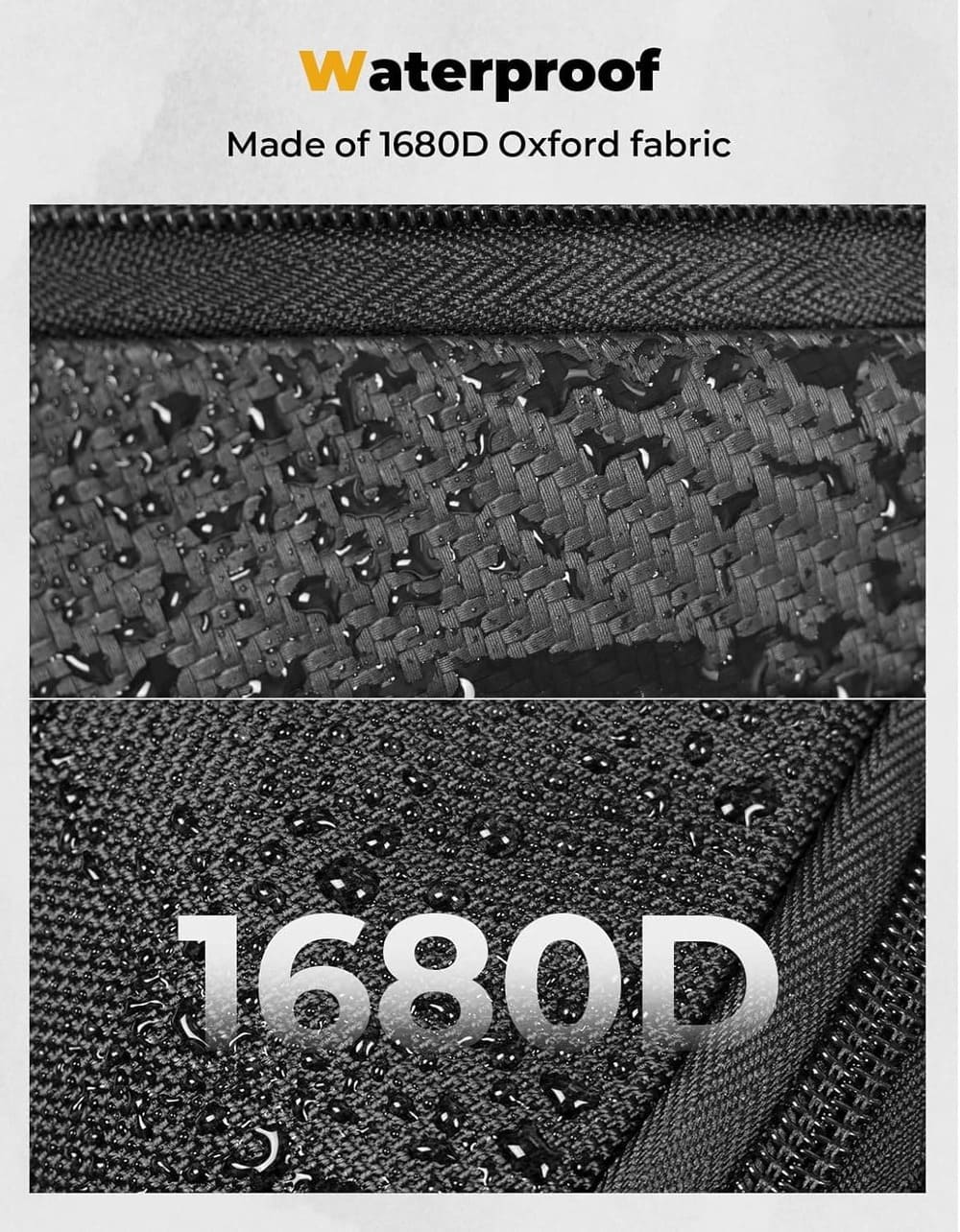 KEMIMOTO UTV roof storage bag is made of high-density 1680D Oxford fabric, offering superior protection against water, scratches, wear, tear, and dust.